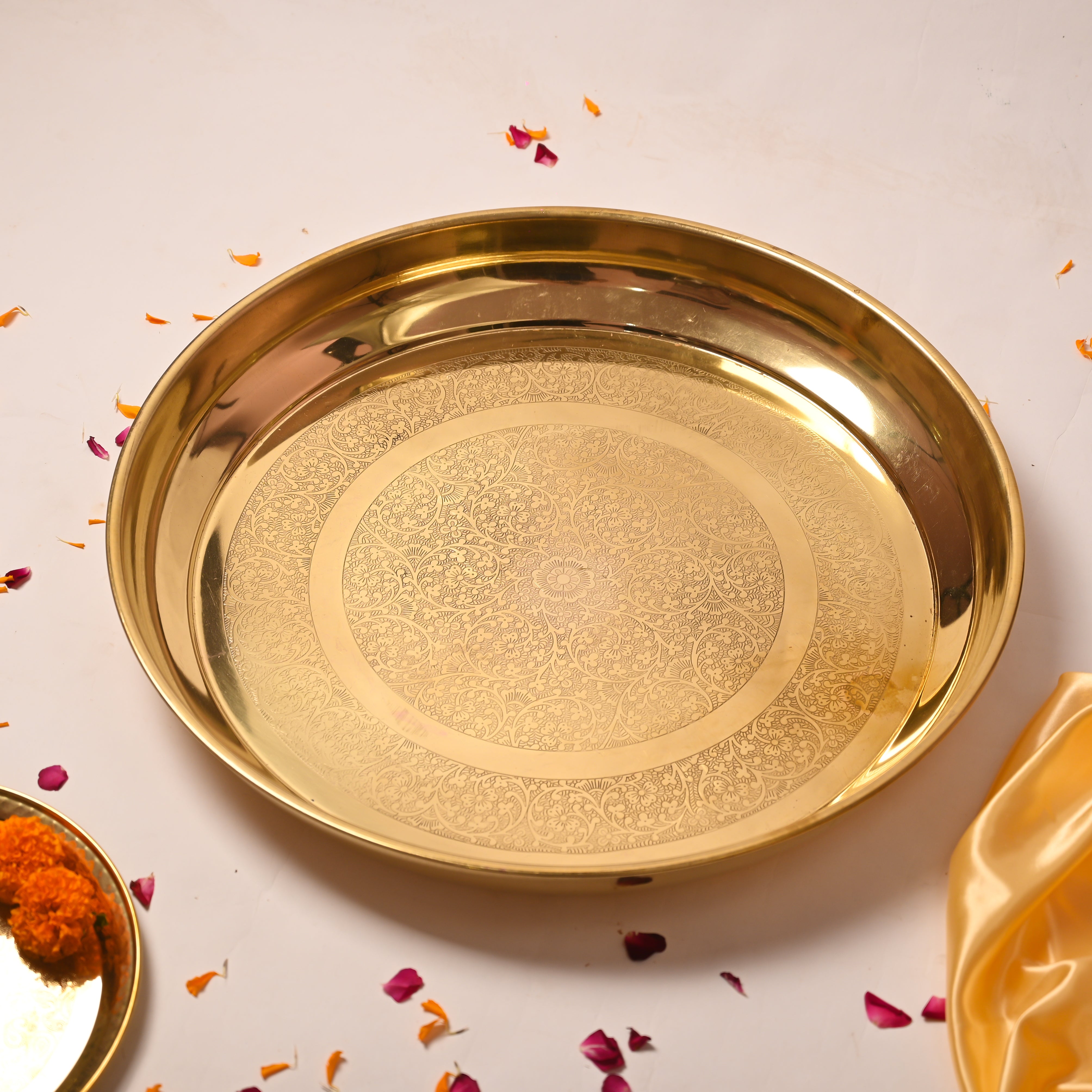 Traditionally used in Indian households for kneading dough or mixing ingredients, this traditional Indian brassware piece also serves beautifully as a centerpiece, fruit tray, or premium brass decor accent during festive occasions. Its elegant carvings and durable build make it a timeless addition to your home.