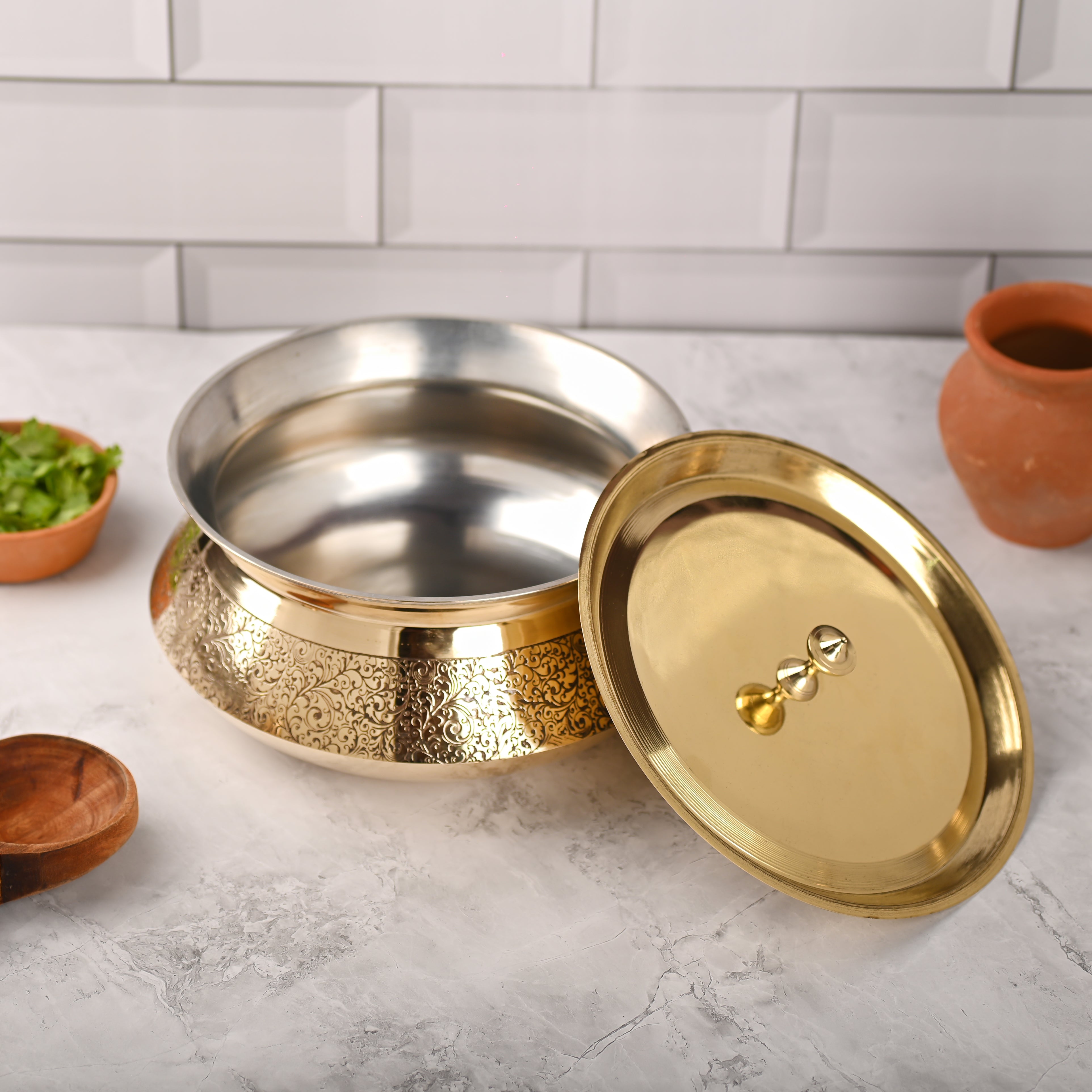 Handmade Brass Royal Handi with Lid, crafted by skilled artisans.