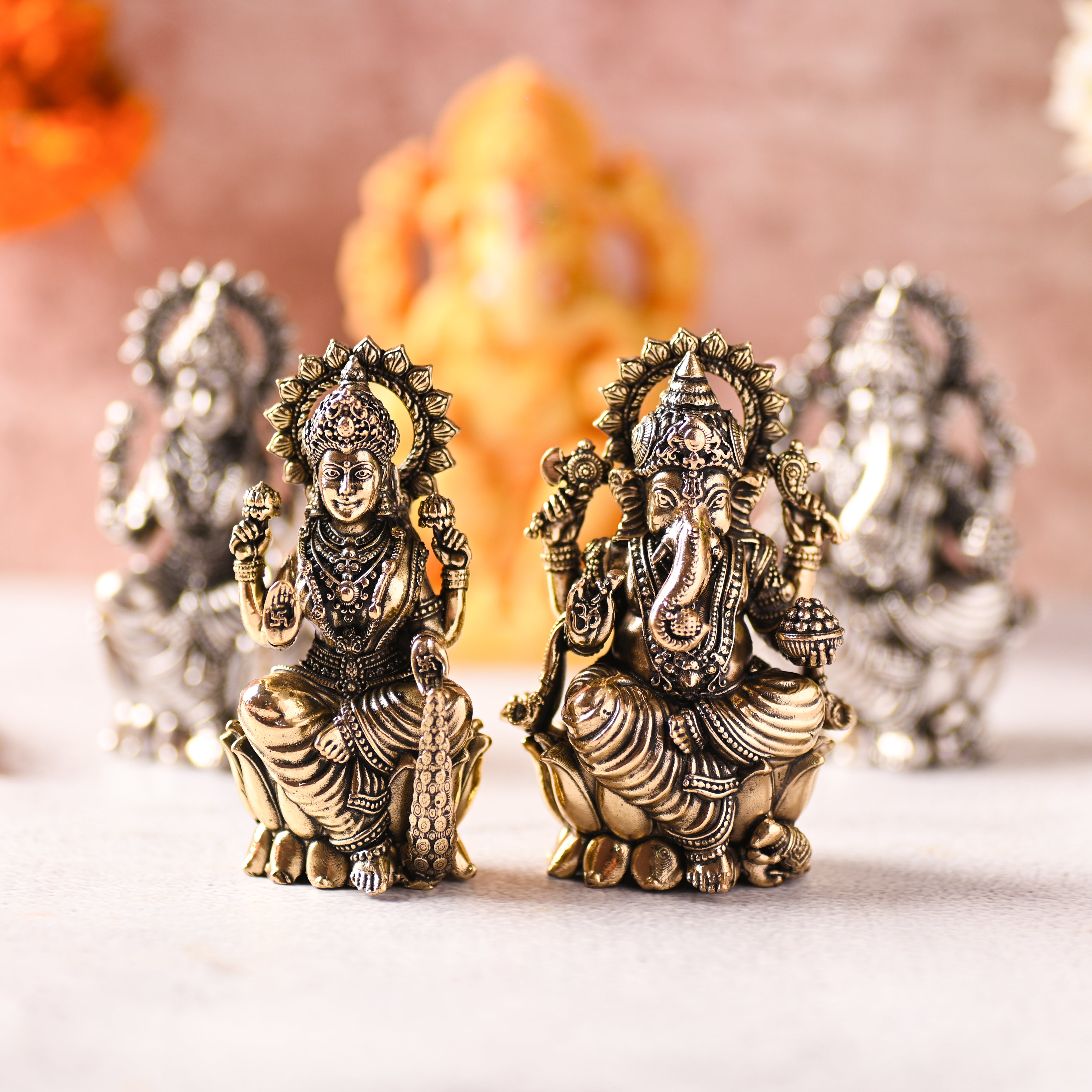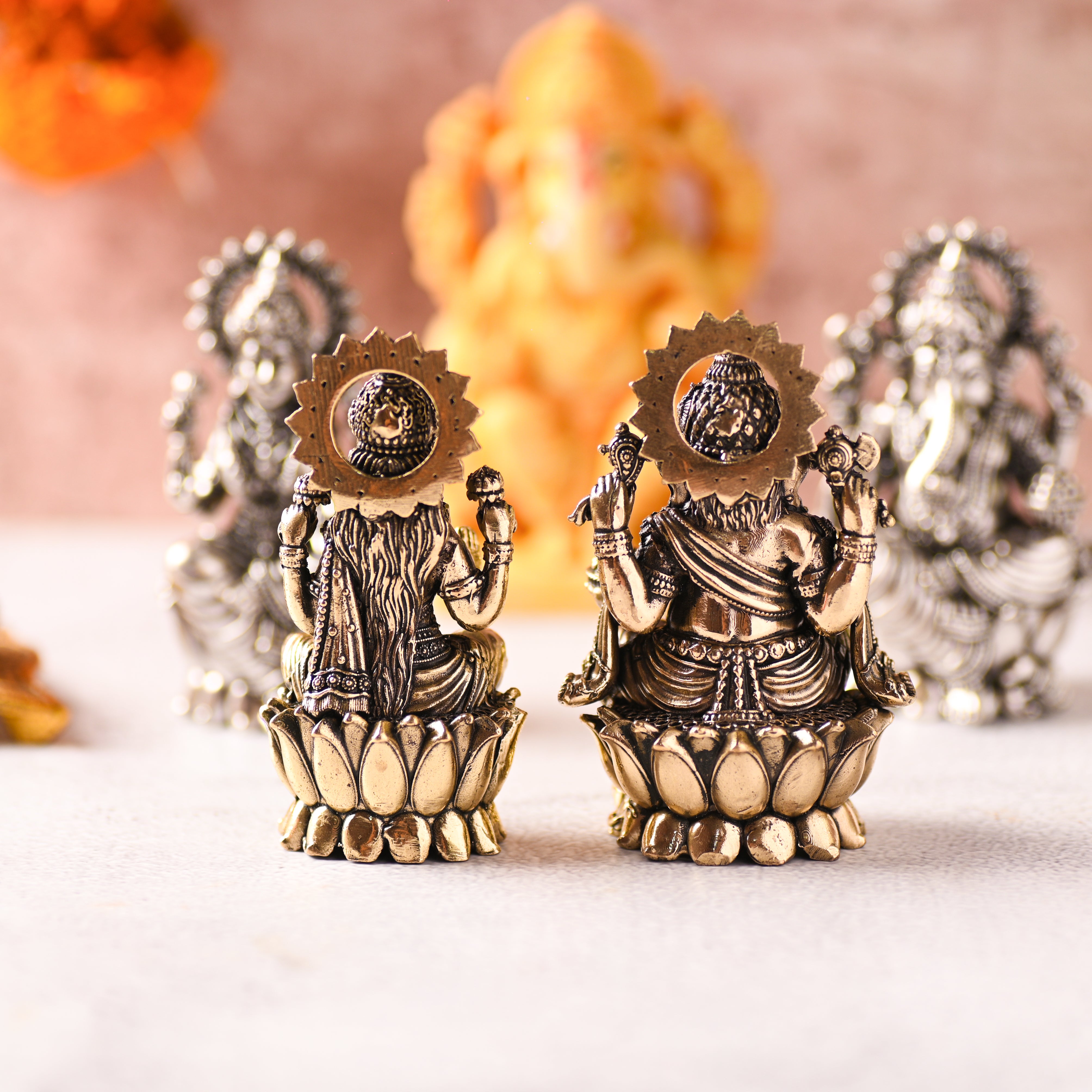 Brass Superfine Lotus Ganesha & Lakshmi Idol – Premium Divine Decor (3.5 Inch)