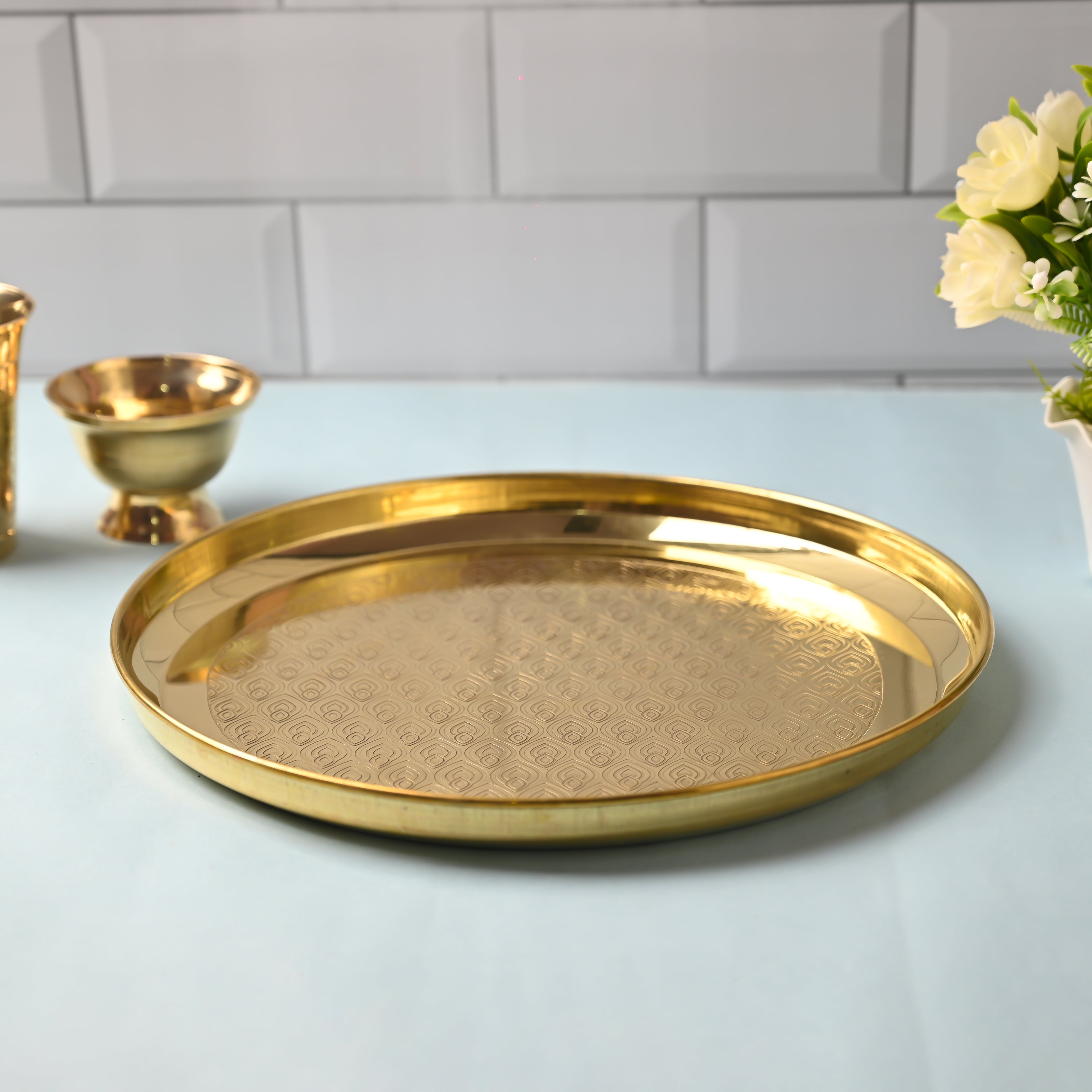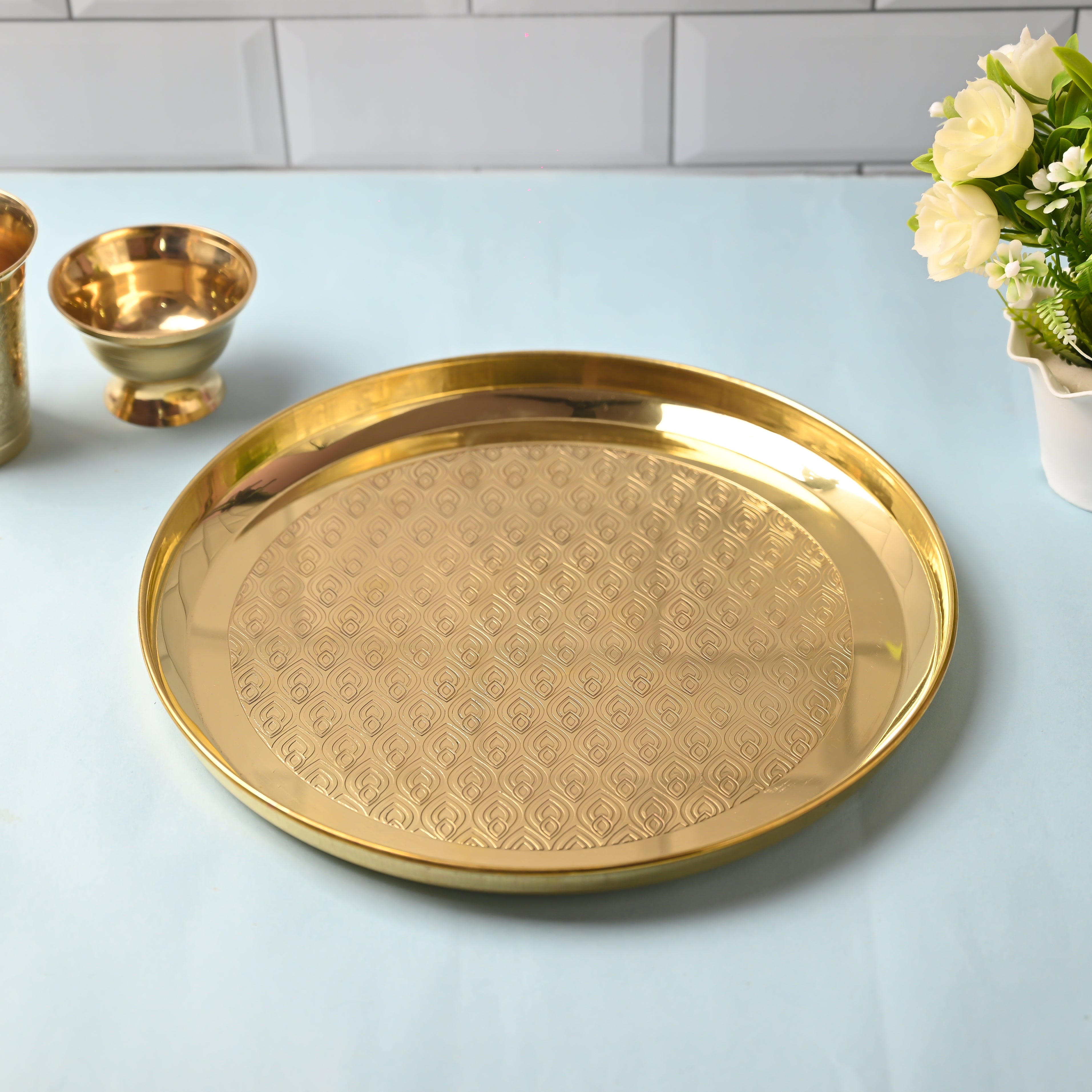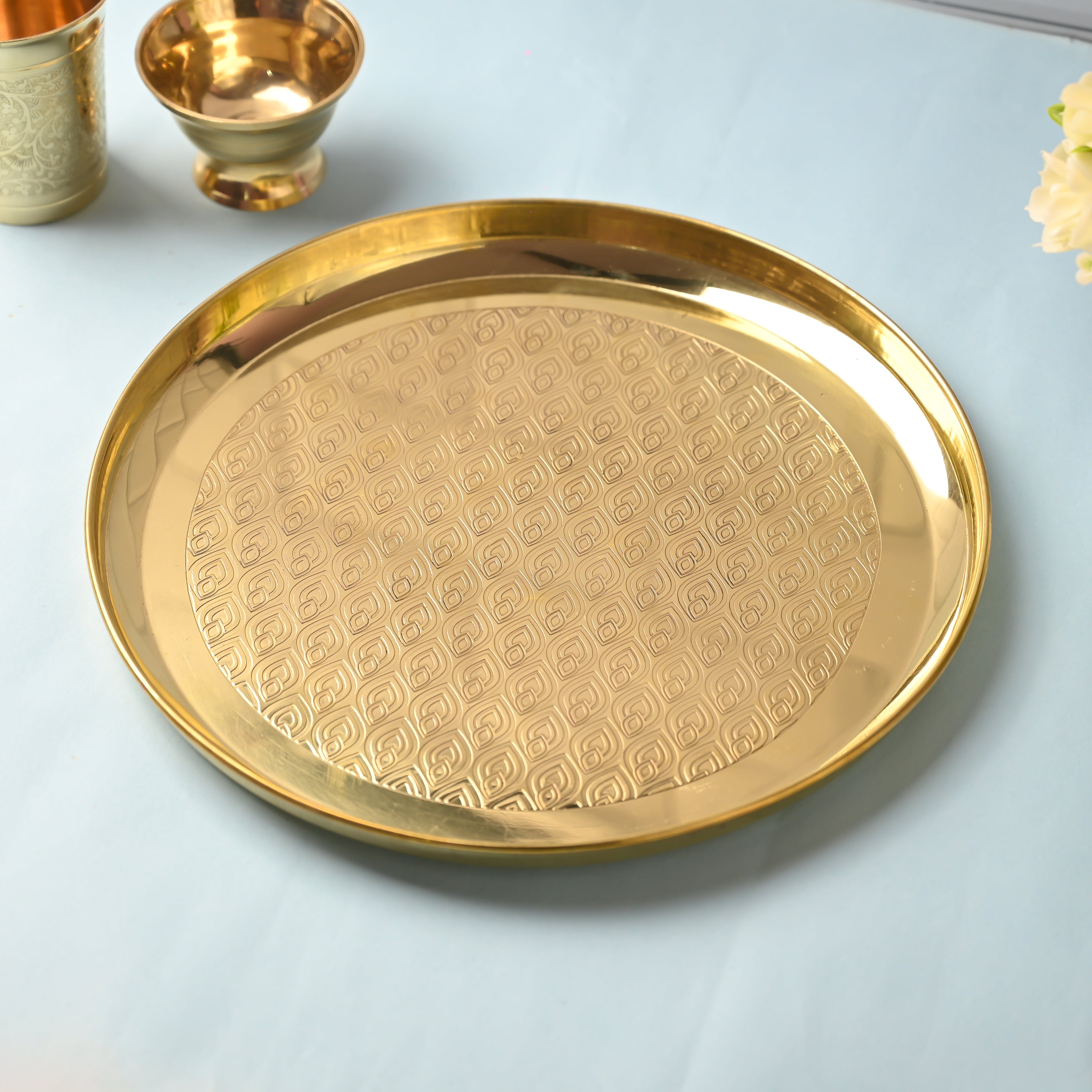 Perfect for serving traditional Indian dishes or as a premium brass decor accent, this thali combines beauty with functionality. Its smooth surface and classic design make it ideal for temples, pooja rituals, festive feasts, or elegant table settings. Every curve and carving narrates the story of Indian craftsmanship passed down through generations.