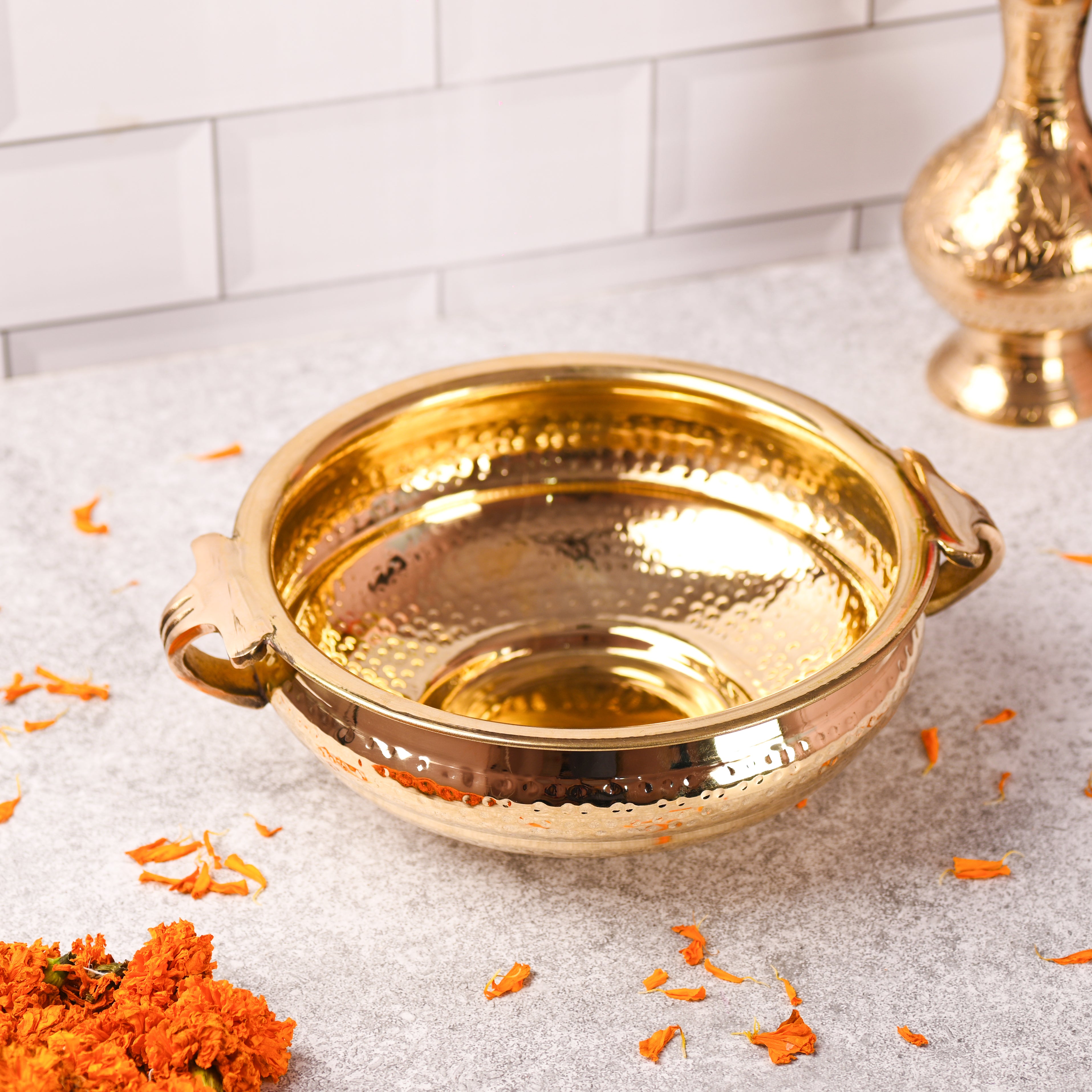 However, we assure you that the same design shown in the pictures will be delivered, made from 100% pure brass (or copper/kansa, as specified) with the finest quality craftsmanship.