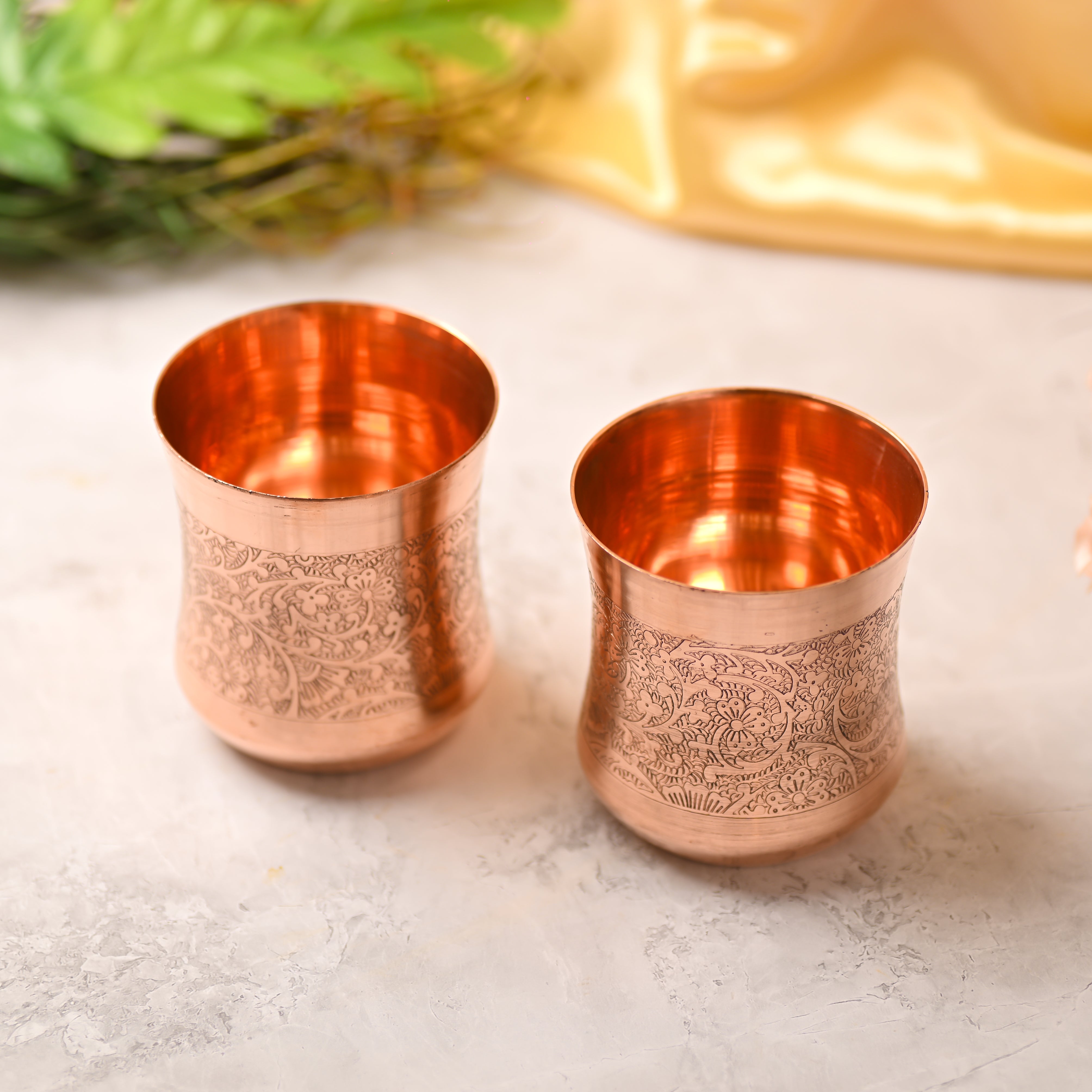 Beautiful hand-carved copper glass pair crafted by expert artisans