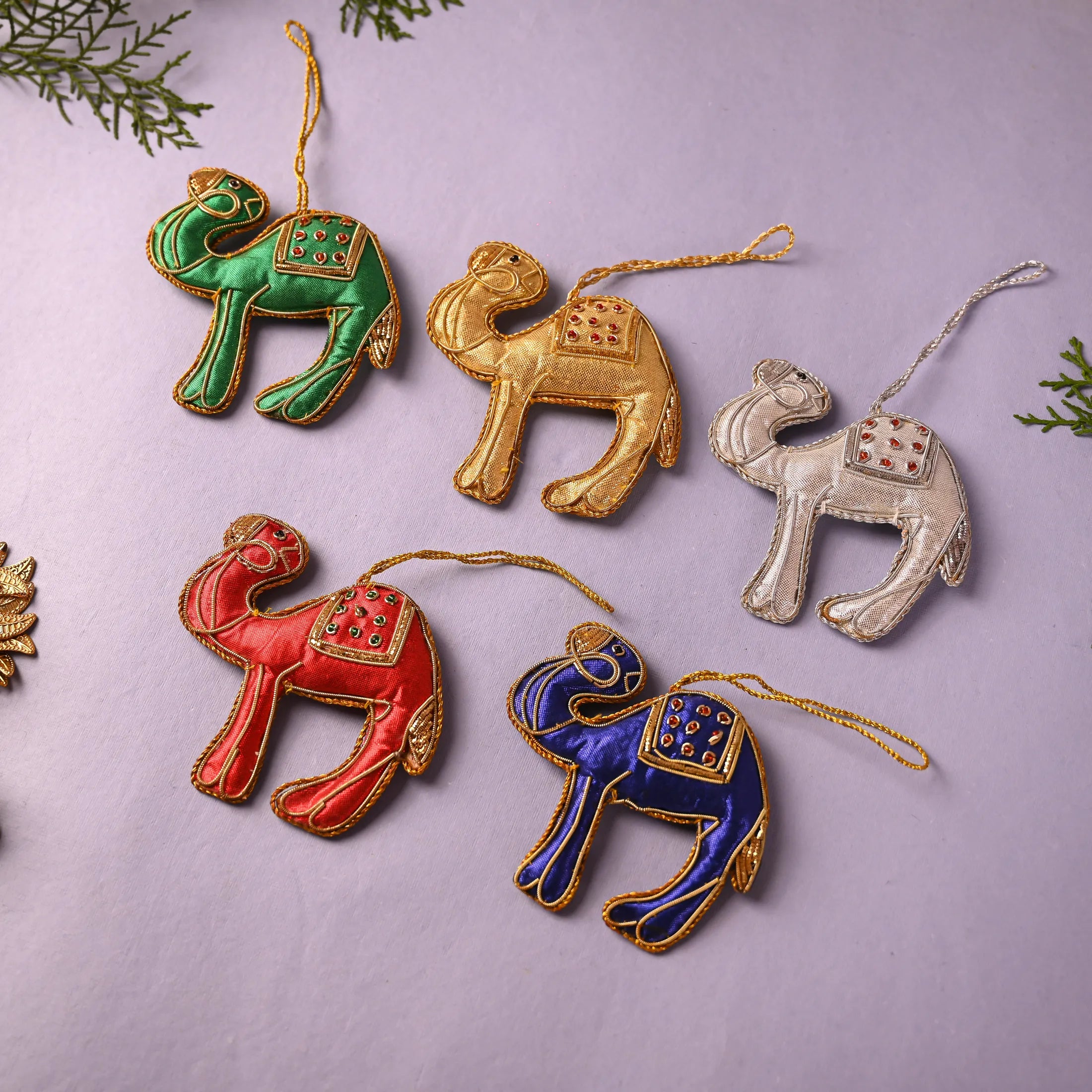 Embroidered Decorative Camel Christmas Tree Hanging Set (3.5 Inch)