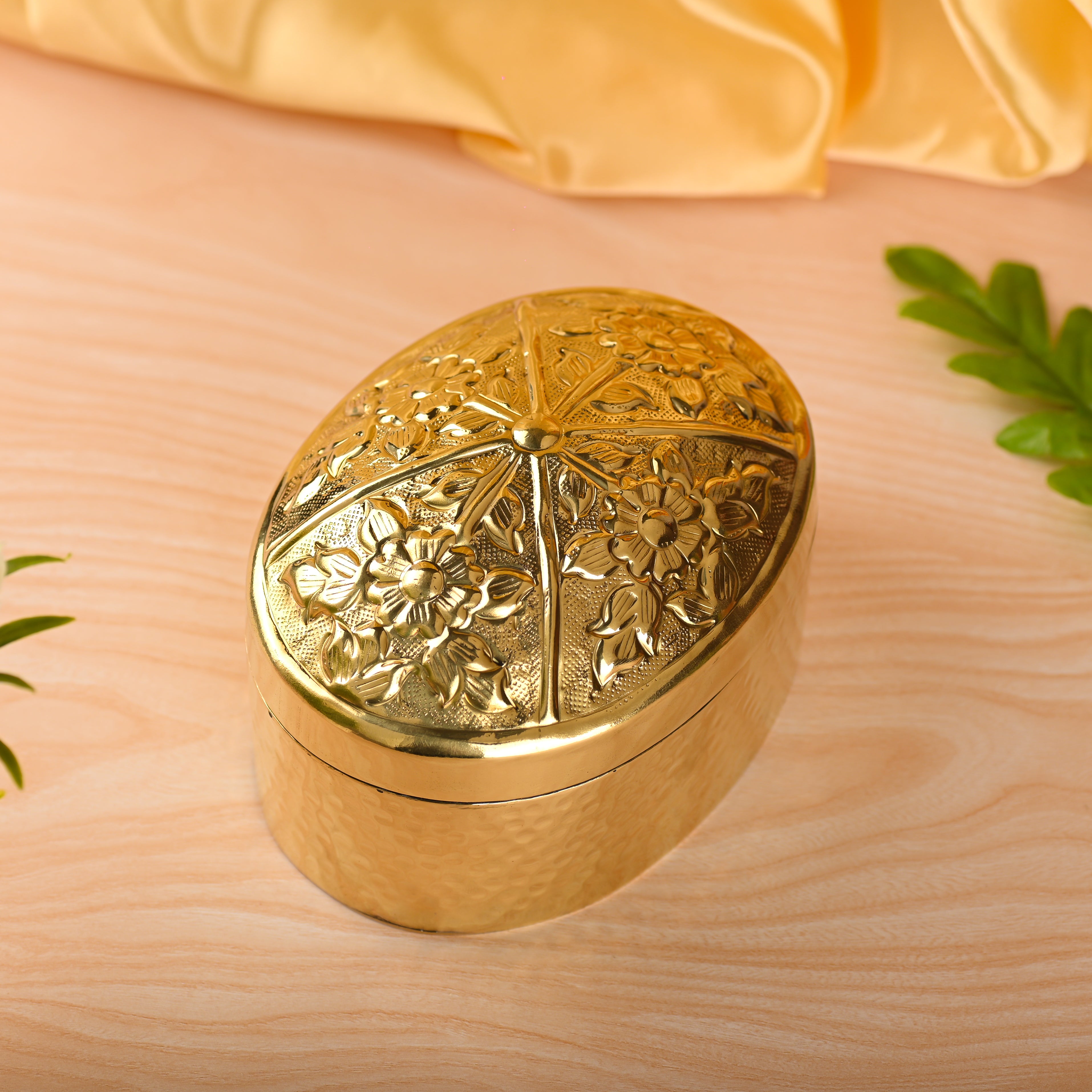 Brass Elegant Oval Bowl with Cover – Traditional Indian Brassware (4 Inch)