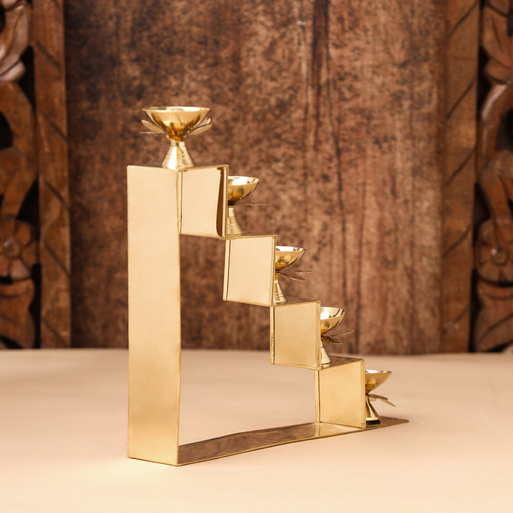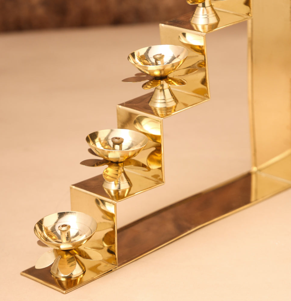 Brass Five Steps Decorative Akhand Diya (8.5 Inch)
