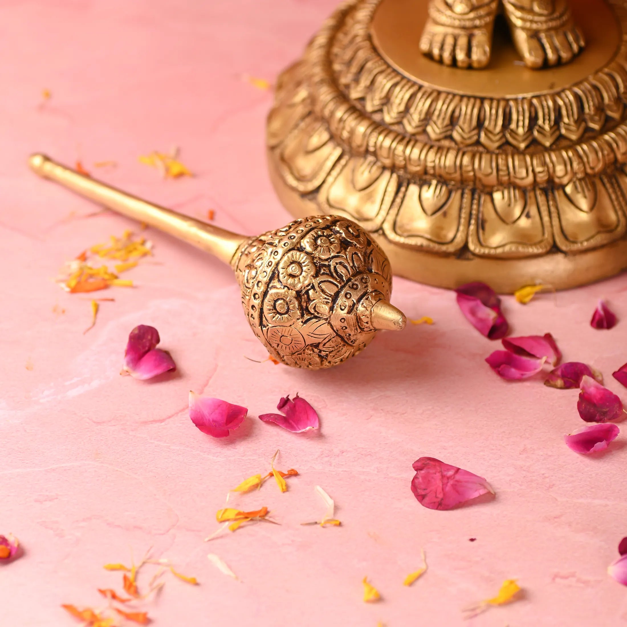 However, we assure you that the same design shown in the pictures will be delivered, made from 100% pure brass (or copper/kansa, as specified) with the finest quality craftsmanship.