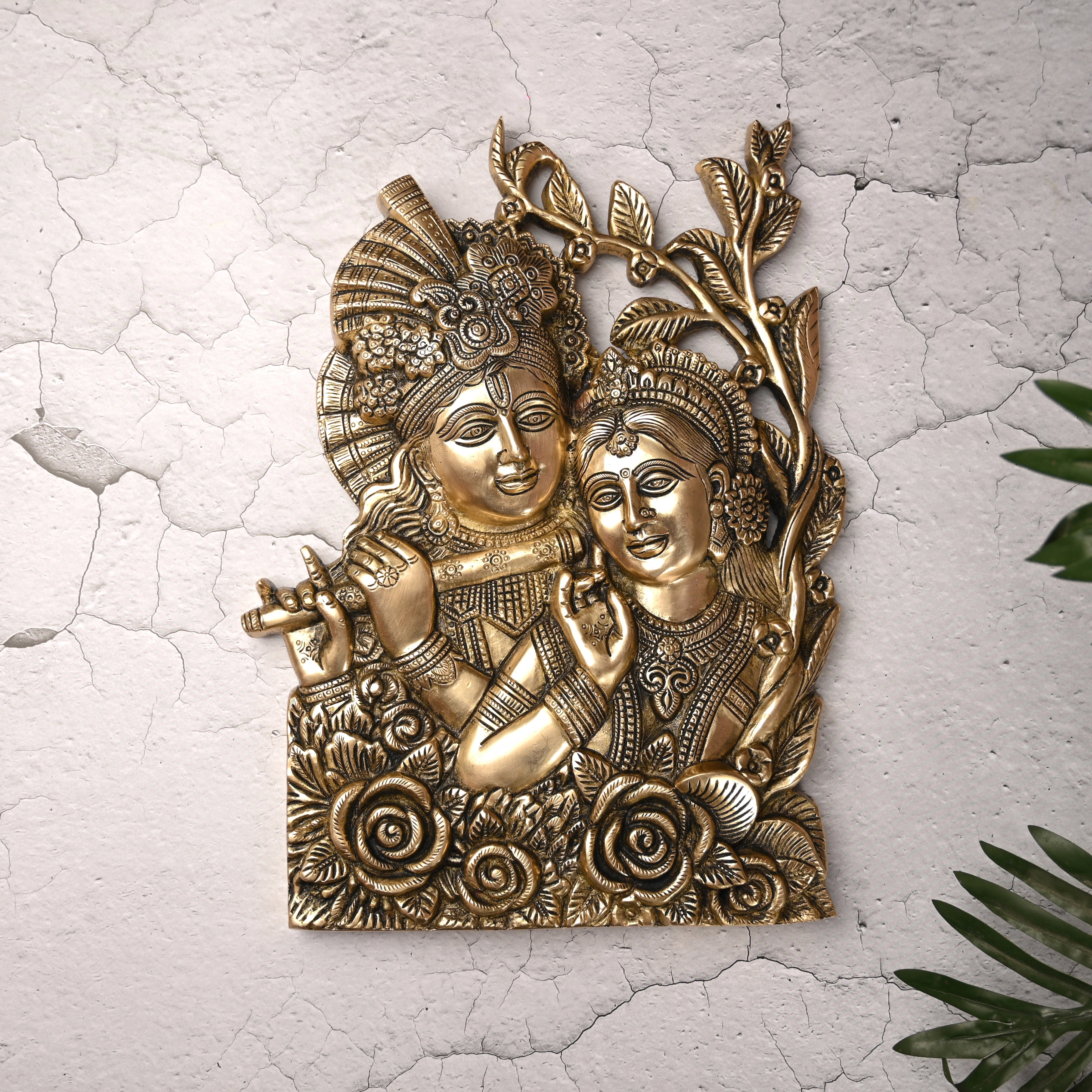 Brass Radha Krishna Idol Wall Hanging (14 Inch)