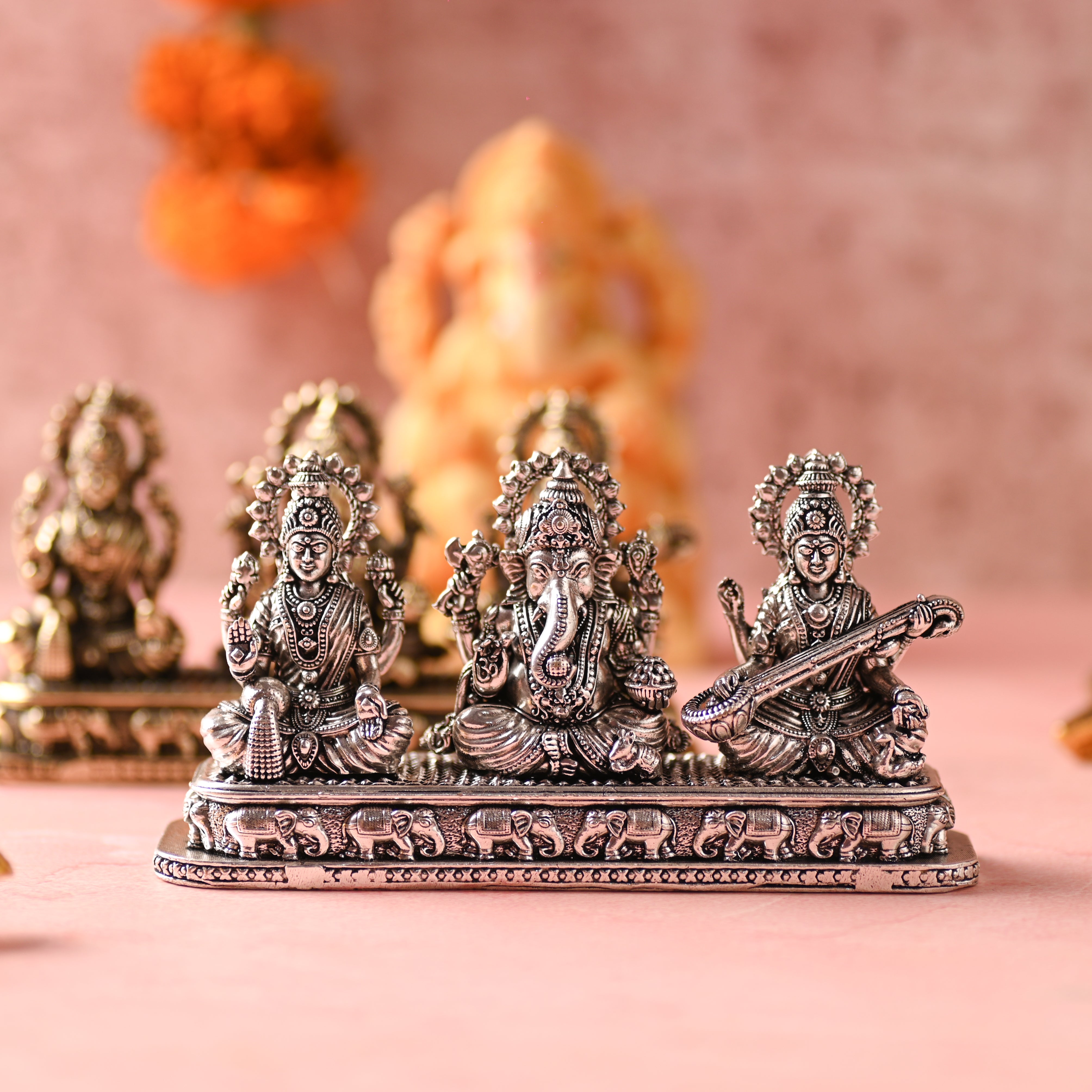 Handcrafted trio of Lord Ganesha, Goddess Lakshmi & Goddess Saraswati