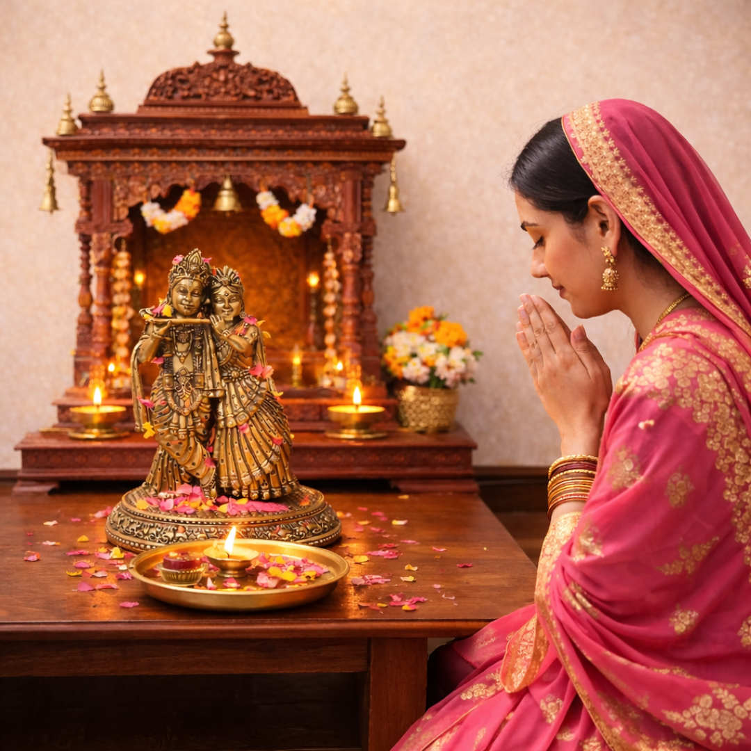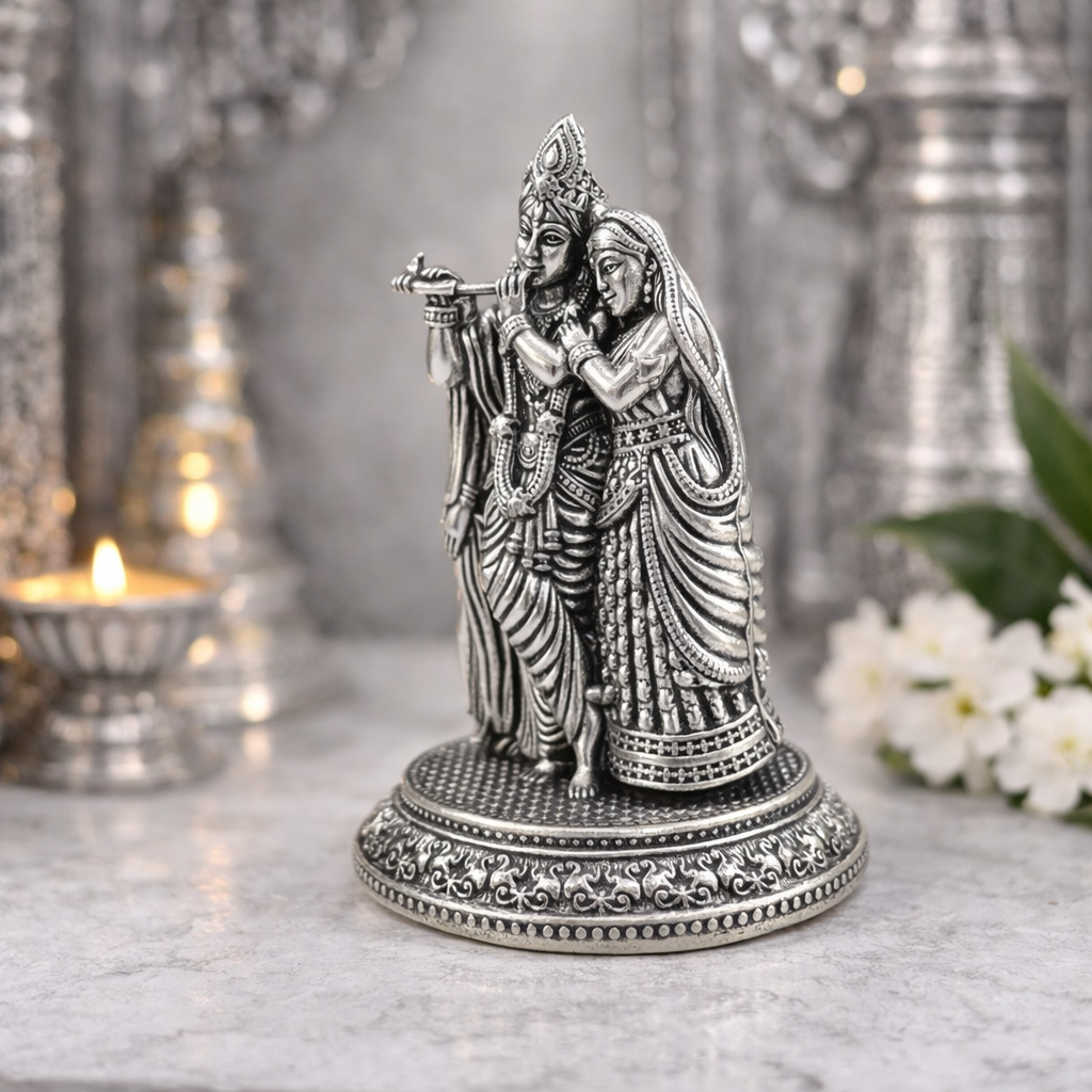 Whether used for daily worship, festive decoration, or gifting, this Radha Krishna brass idol adds spiritual warmth and timeless elegance to any space.