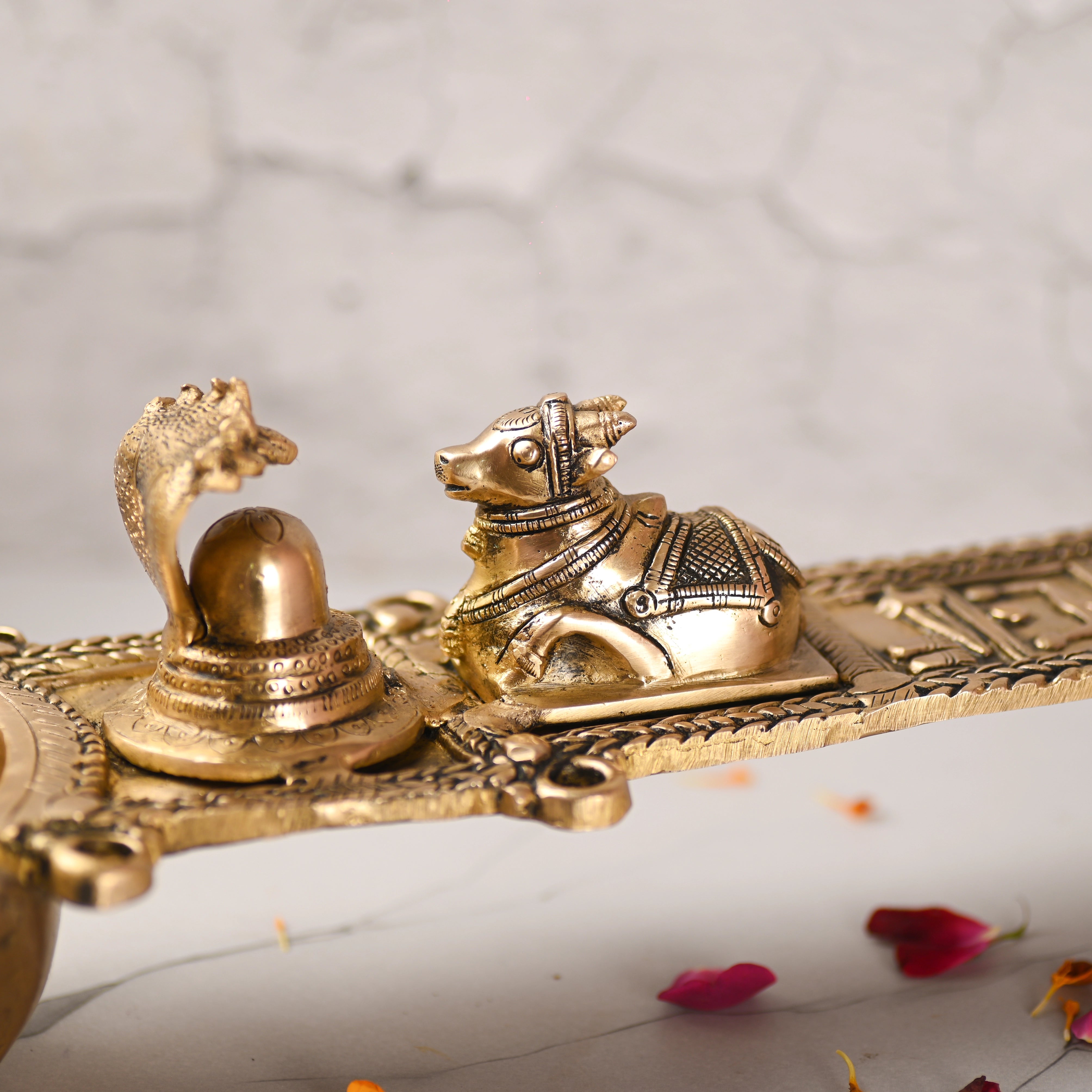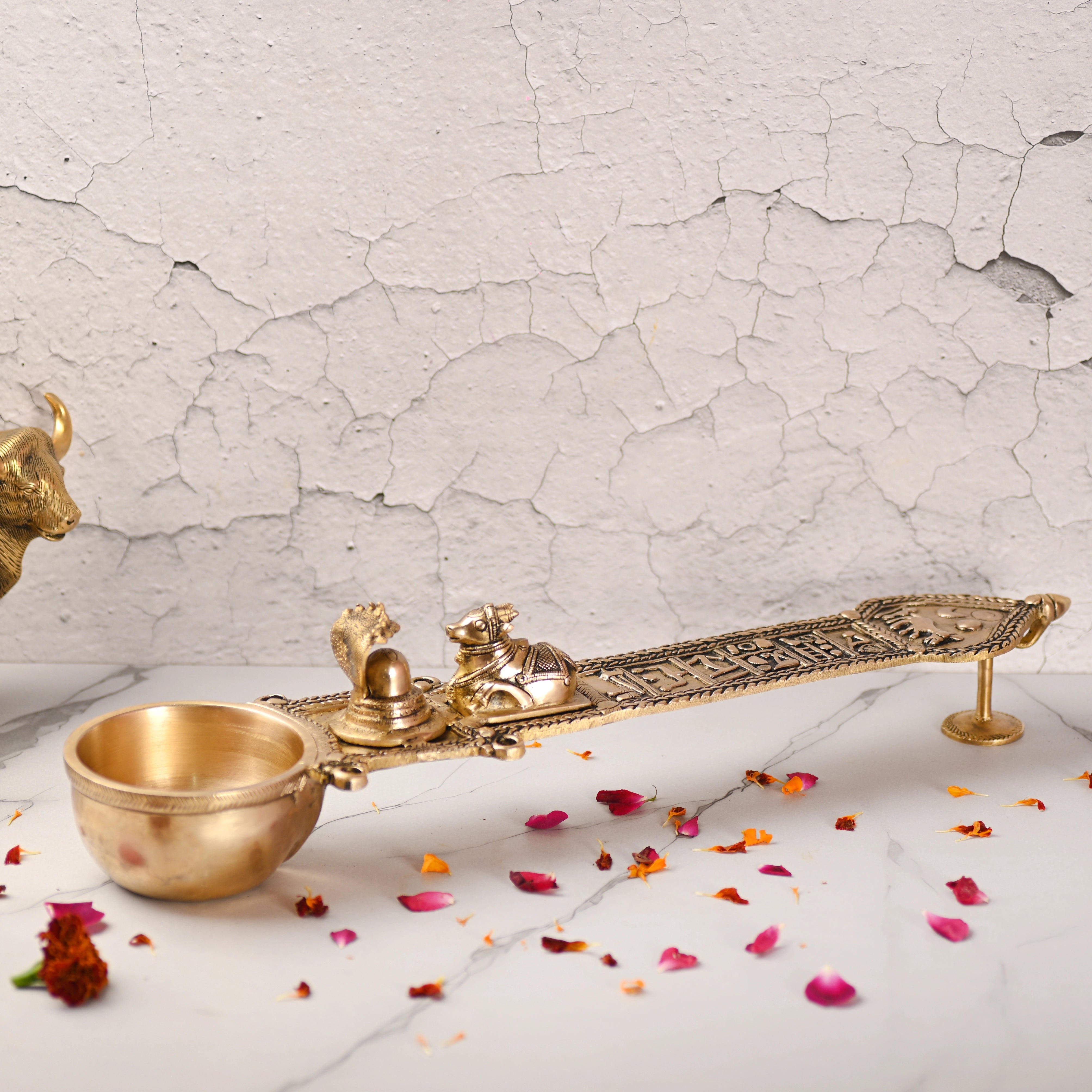 Brass Uddharani Ritual Spoon with Nandi and Shivling (23.5 Inch)