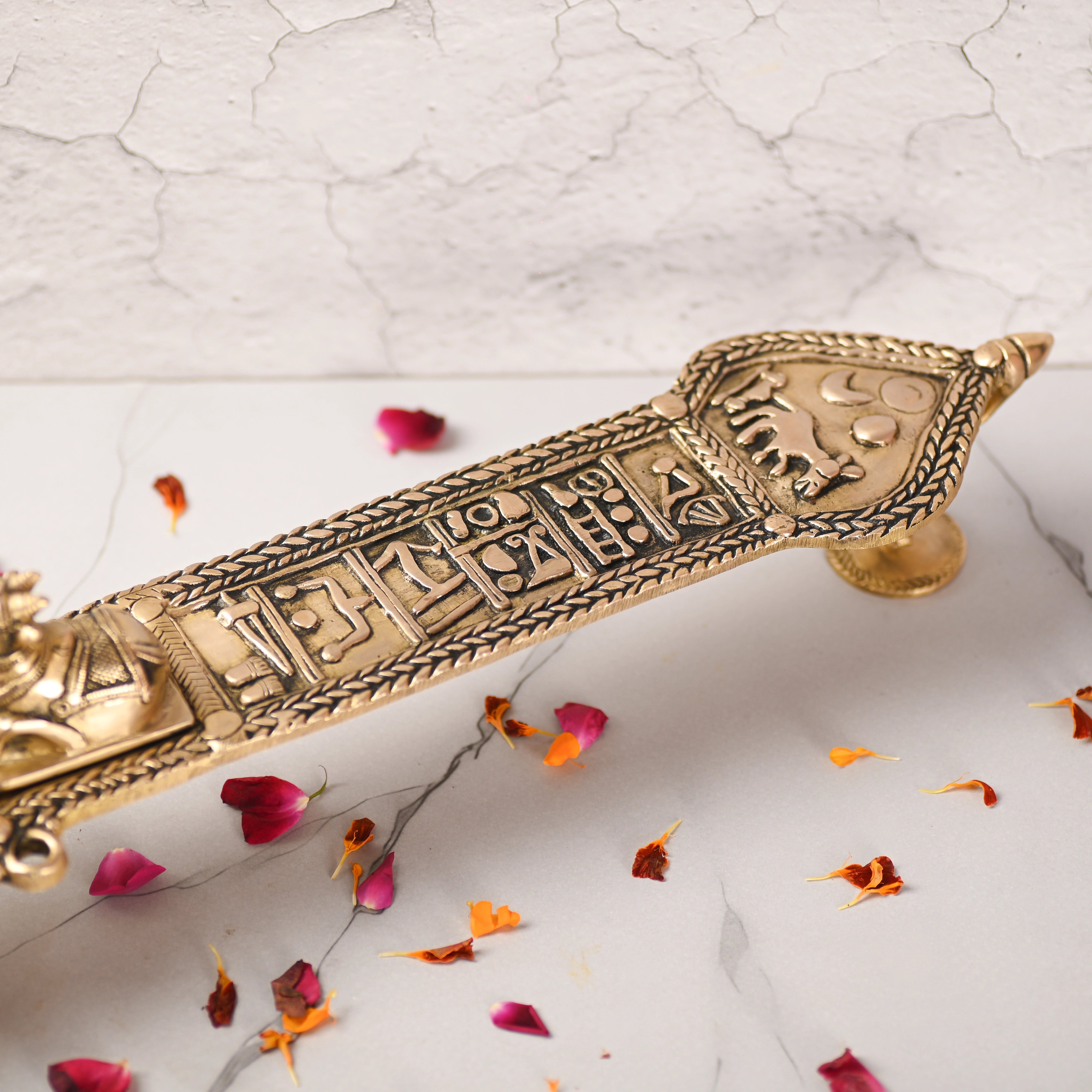 Each piece is meticulously handcrafted by skilled artisans using age old metalworking techniques, reflecting the authenticity and heritage of fine brass handicrafts. The intricate sculpting of the figures and the balanced form of the spoon highlight exceptional craftsmanship, making it both a functional ritual tool and a meaningful premium brass decor accent for your pooja space.