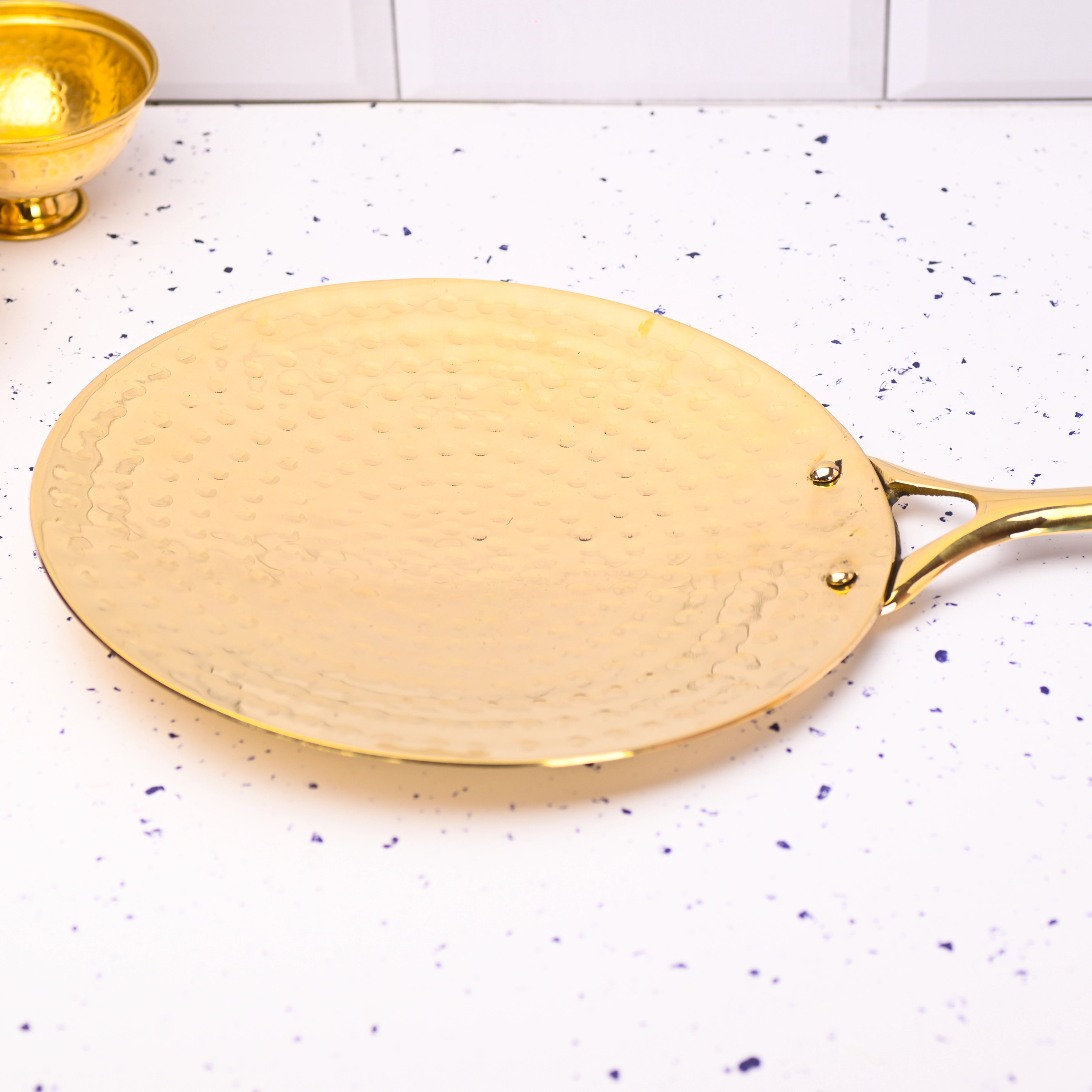 Ideal for traditional kitchens, heritage cooking enthusiasts, or thoughtful gifting, this brass tawa blends utility with timeless craftsmanship.
