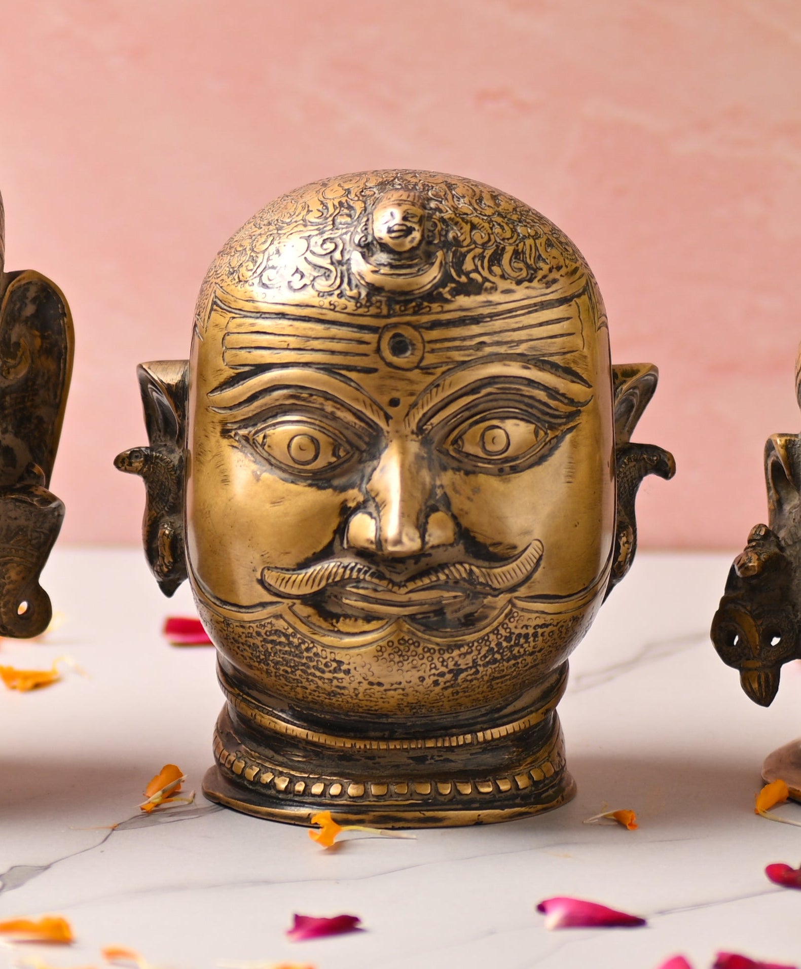 Elevate your home or sacred space with this handcrafted Brass Shiva Head Idol, a perfect blend of spirituality and artistry. Skillfully carved by expert artisans, this idol captures the serene and powerful essence of Lord Shiva, reflecting centuries-old traditional Indian brassware techniques. Each piece is unique, with subtle variations in texture and finish, making it a truly authentic brass handicraft. Perfect for meditation corners, home altars, or as a striking centerpiece, it brings a touch of divine energy and cultural heritage to any space.