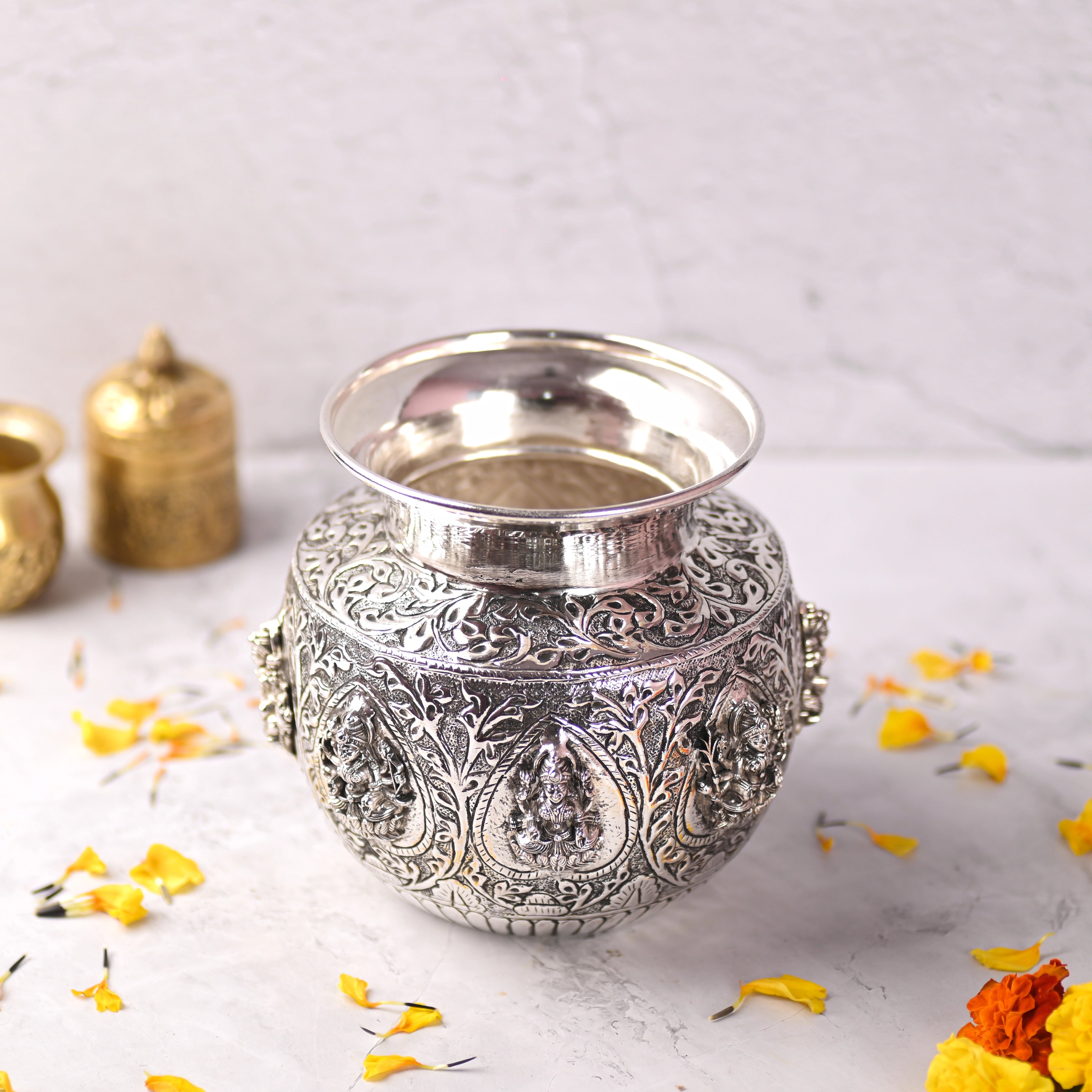 Brass Silver Plated Ashtalakshmi Kodam / Kalash (6 Inch)