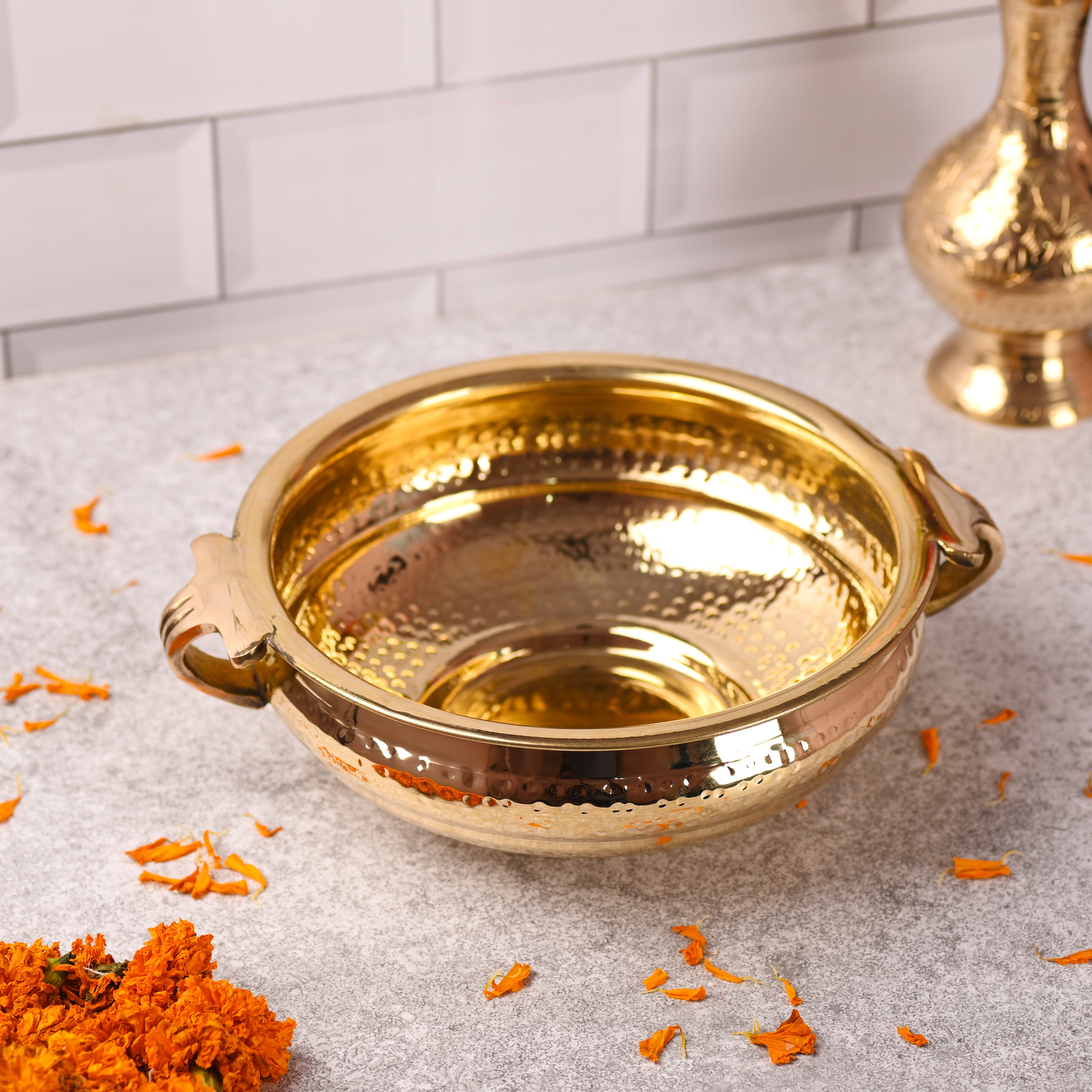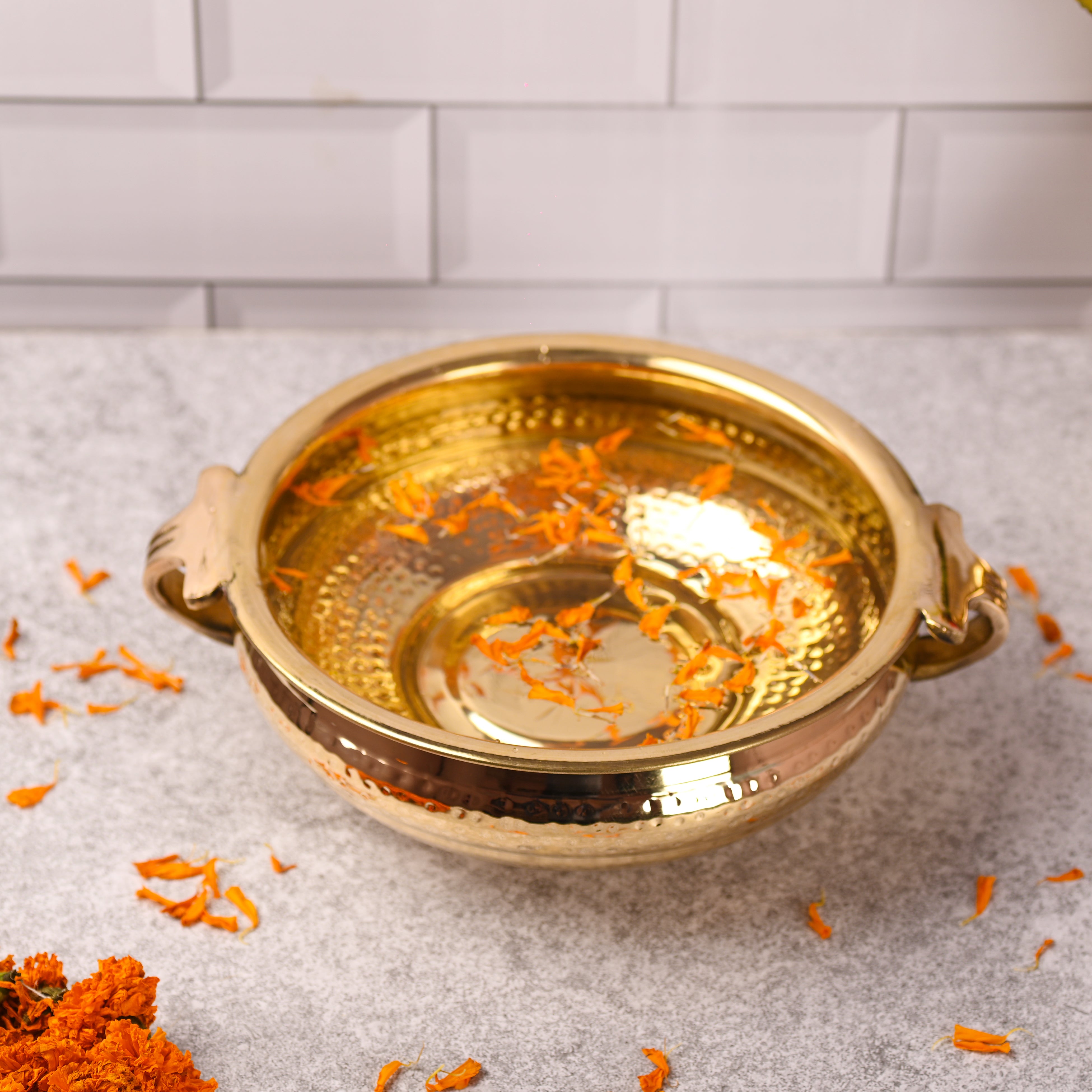 Add a touch of timeless elegance to your home with this Brass Traditional Hammered Urli/Floater, beautifully handcrafted by skilled Indian artisans. Featuring a classic hammered texture and a gracefully rounded form, this urli reflects the rich cultural heritage of traditional Indian brassware and the artistry of authentic brass handicrafts.