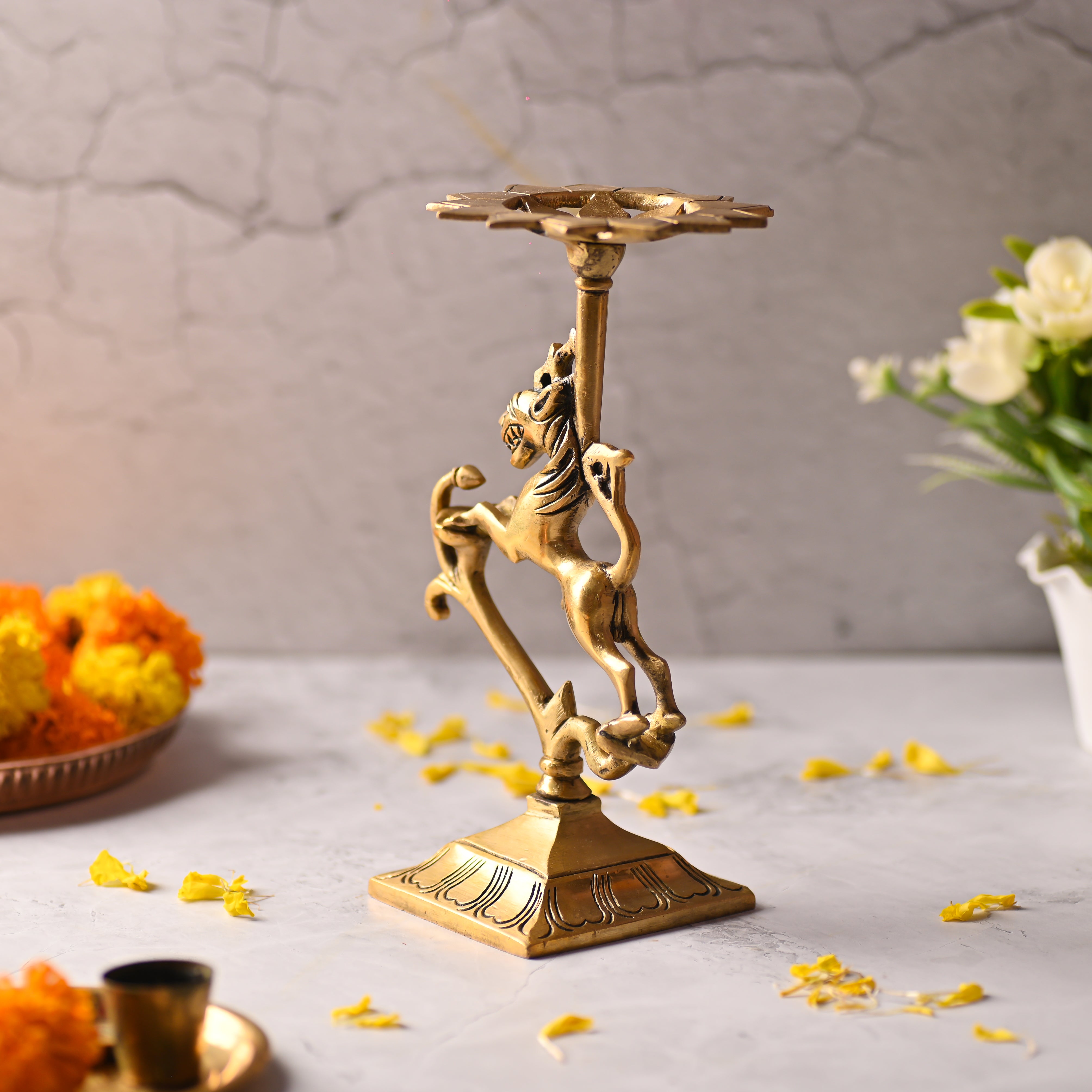 Bring a touch of regal elegance and spiritual symbolism to your home with this exquisite Brass Yali Candle Stand, a fine example of traditional Indian brassware. Handcrafted by skilled artisans, this candle stand showcases the mythical Yali—an ancient Indian motif symbolizing strength, protection, and power. The detailed carving and graceful form reflect the unmatched artistry of authentic Indian brass handicrafts, making it a striking piece of premium brass decor for any space.