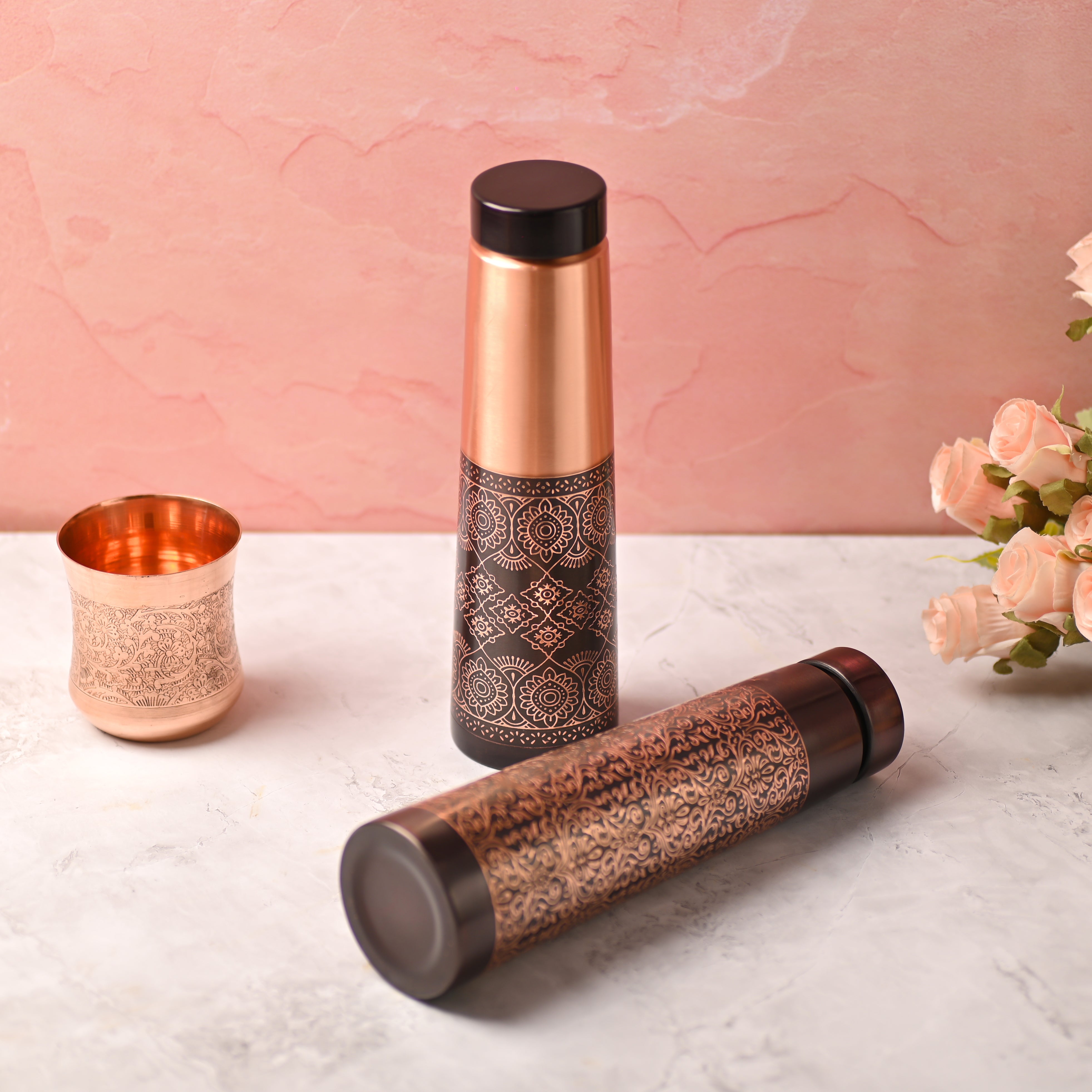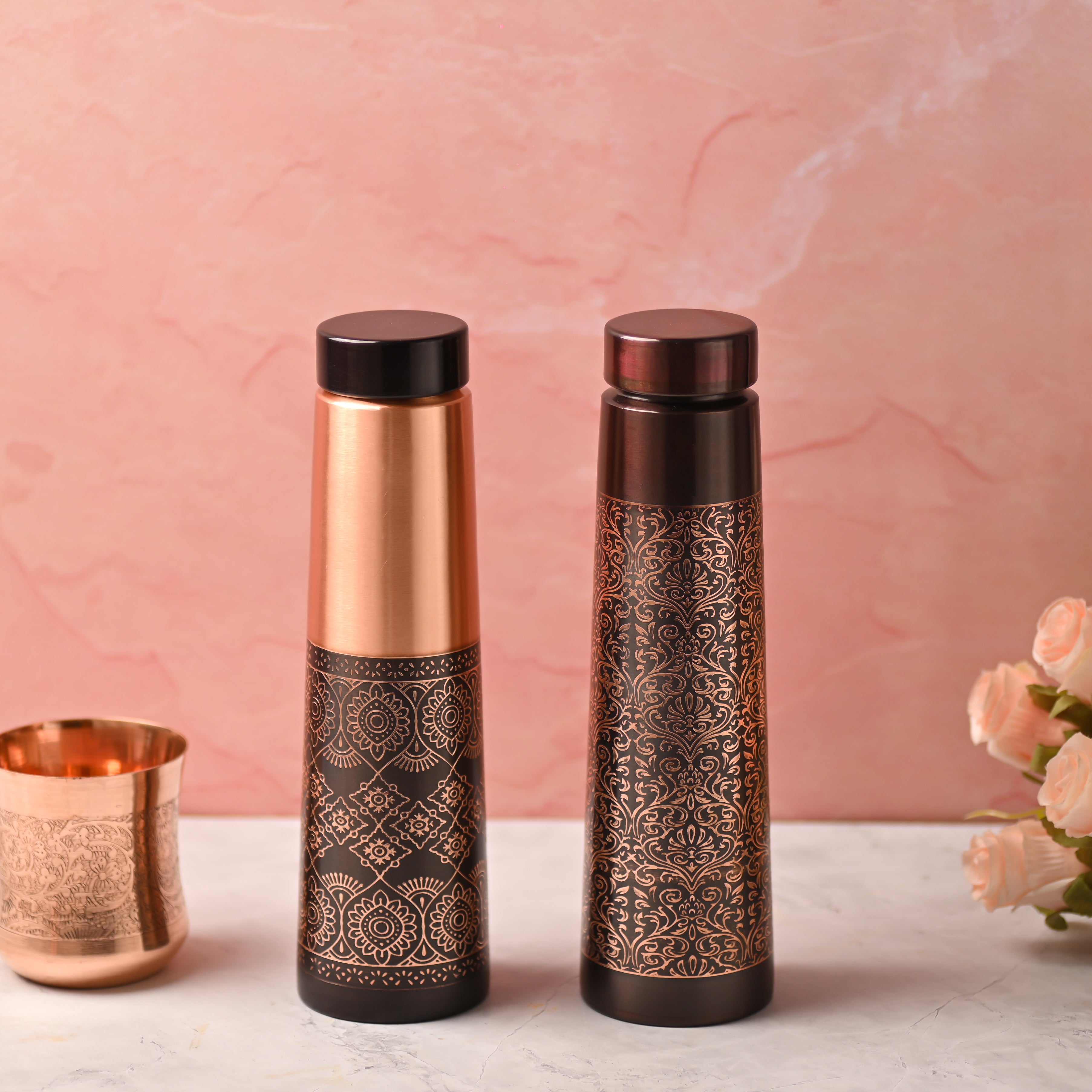 Add a touch of sophistication and wellness to your lifestyle with this Copper Premium Pen Sparkle Bottle (10.5 Inch) — a stunning blend of tradition, health, and artistry. Expertly handcrafted by skilled Indian artisans, this pair reflects the timeless beauty of traditional Indian brassware and copper handicrafts, designed to elevate both your hydration routine and your home décor.
