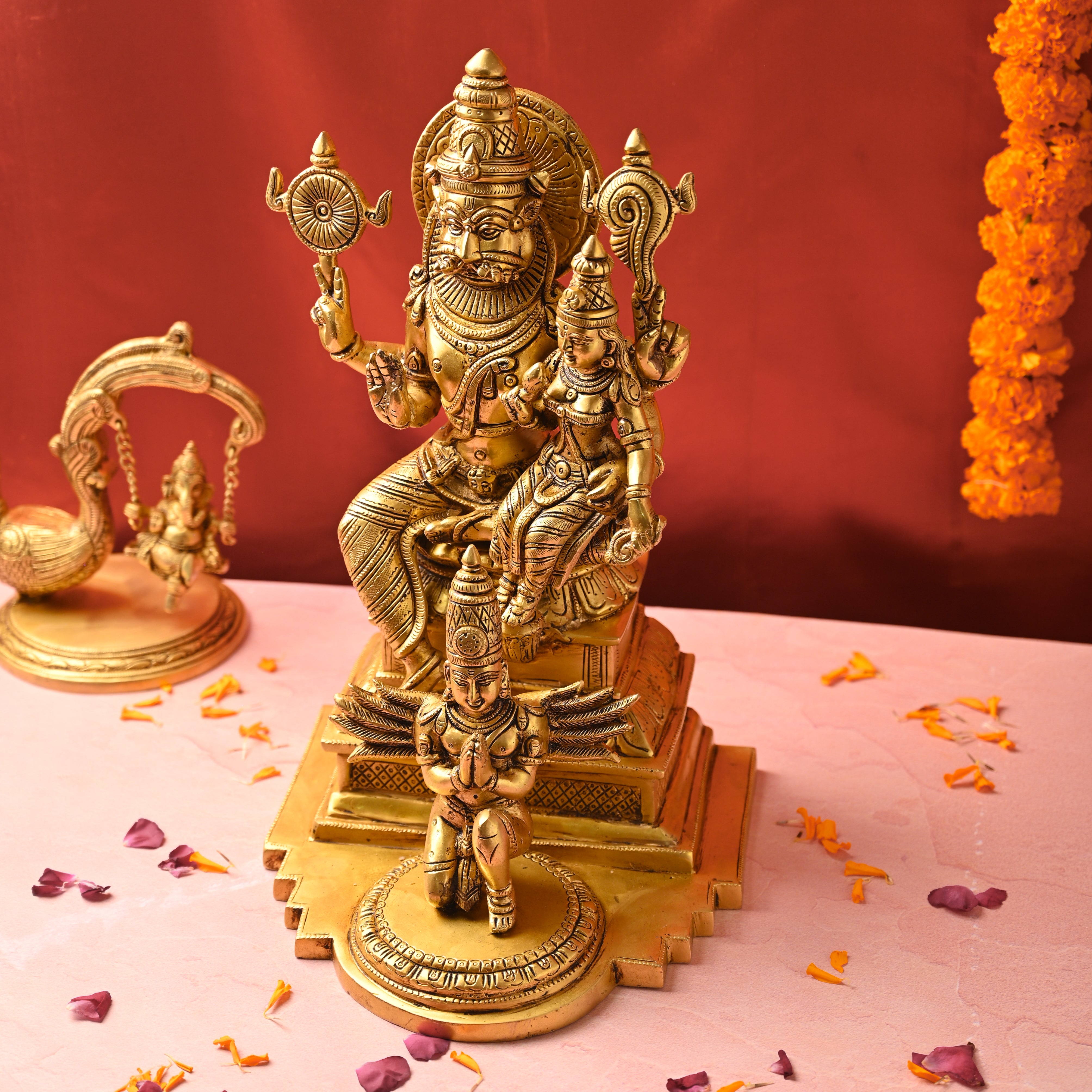 Exquisite handcrafted brass idol of Lakshmi Narasimha with Garuda