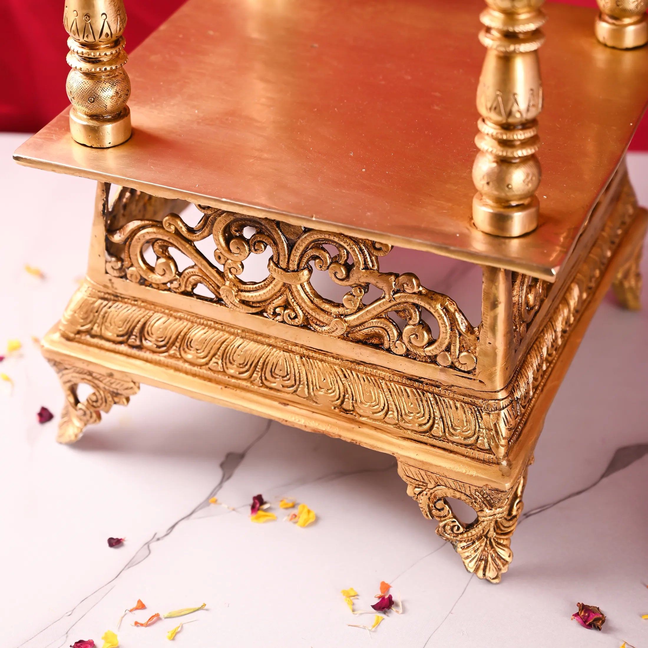 Handmade by skilled Indian artisans using age old metalworking techniques, this mandir showcases fine detailing, balanced proportions, and a rich brass finish that reflects the elegance of authentic traditional Indian brassware. Durable yet graceful, it serves both as a functional pooja mandir and a striking piece of premium brass decor suitable for homes, apartments, and temples.