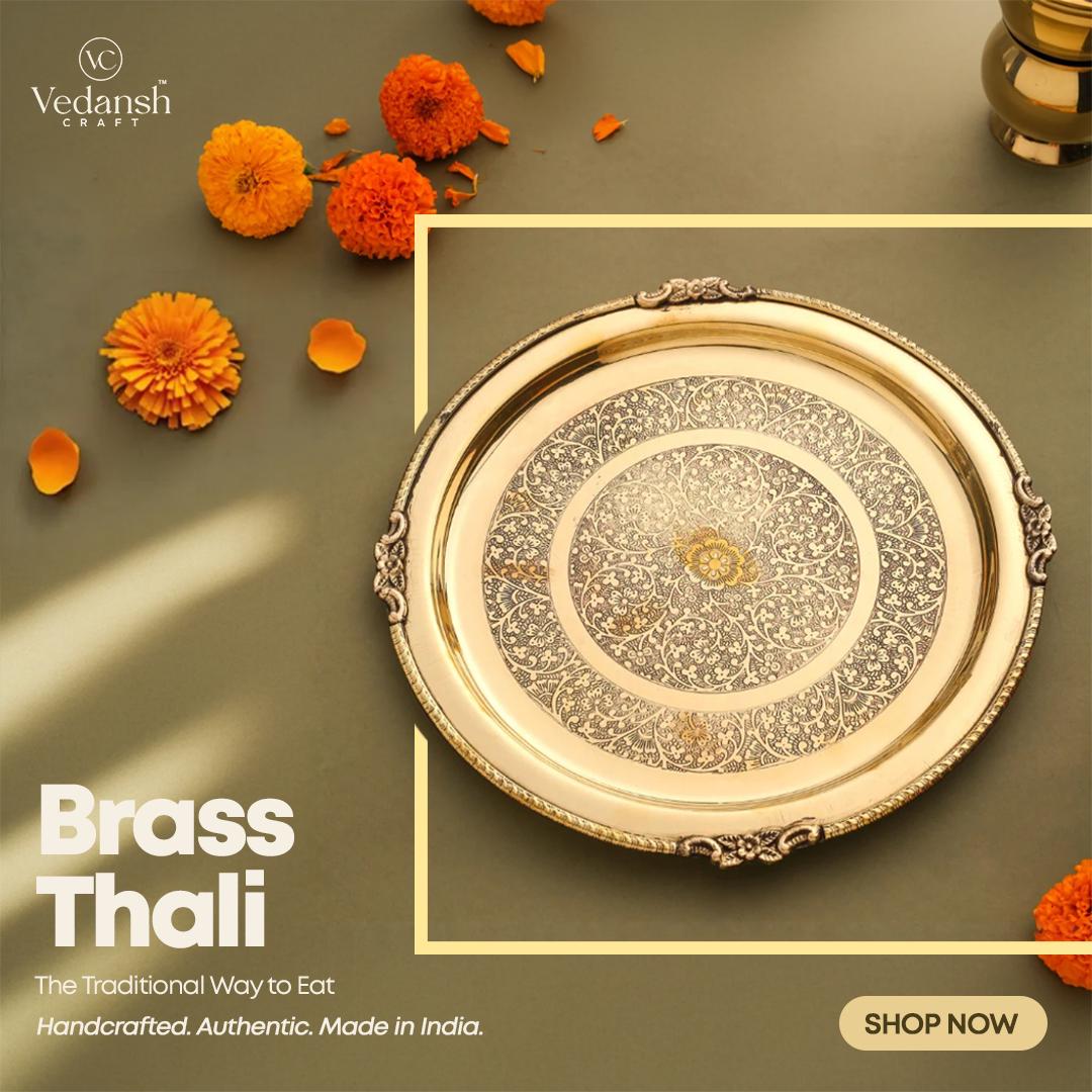 This beautiful Thali has been crafted in pure brass by the skilled artisans of VEDANSH CRAFT. This stunningly crafted Brass Pooja Thali is carefully crafted keeping the finesse of the plate intact. Our artisans have made all afford to make this thali without flaws, and worthy of any offer. It can also be used to serve food.