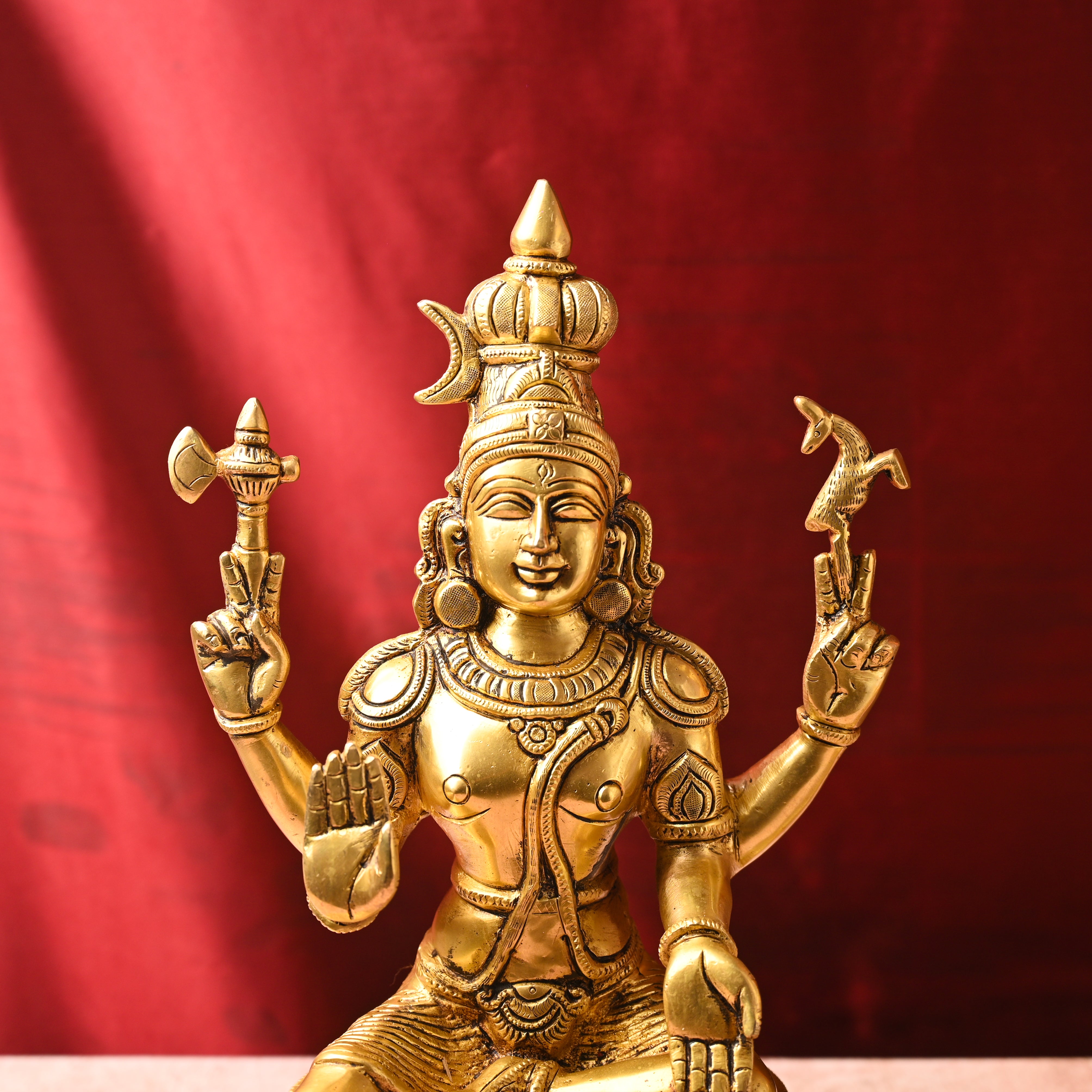 Infuse your home or sacred space with divine energy and timeless elegance with this handcrafted Brass Shiva and Parvati Sitting Idol Set. Meticulously crafted by skilled artisans, this exquisite traditional Indian brassware captures the serene and harmonious essence of Lord Shiva and Goddess Parvati in a seated posture, symbolizing love, balance, and spiritual unity. Each piece is a unique brass handicraft, with subtle variations in texture and finish, making it truly authentic and one-of-a-kind.