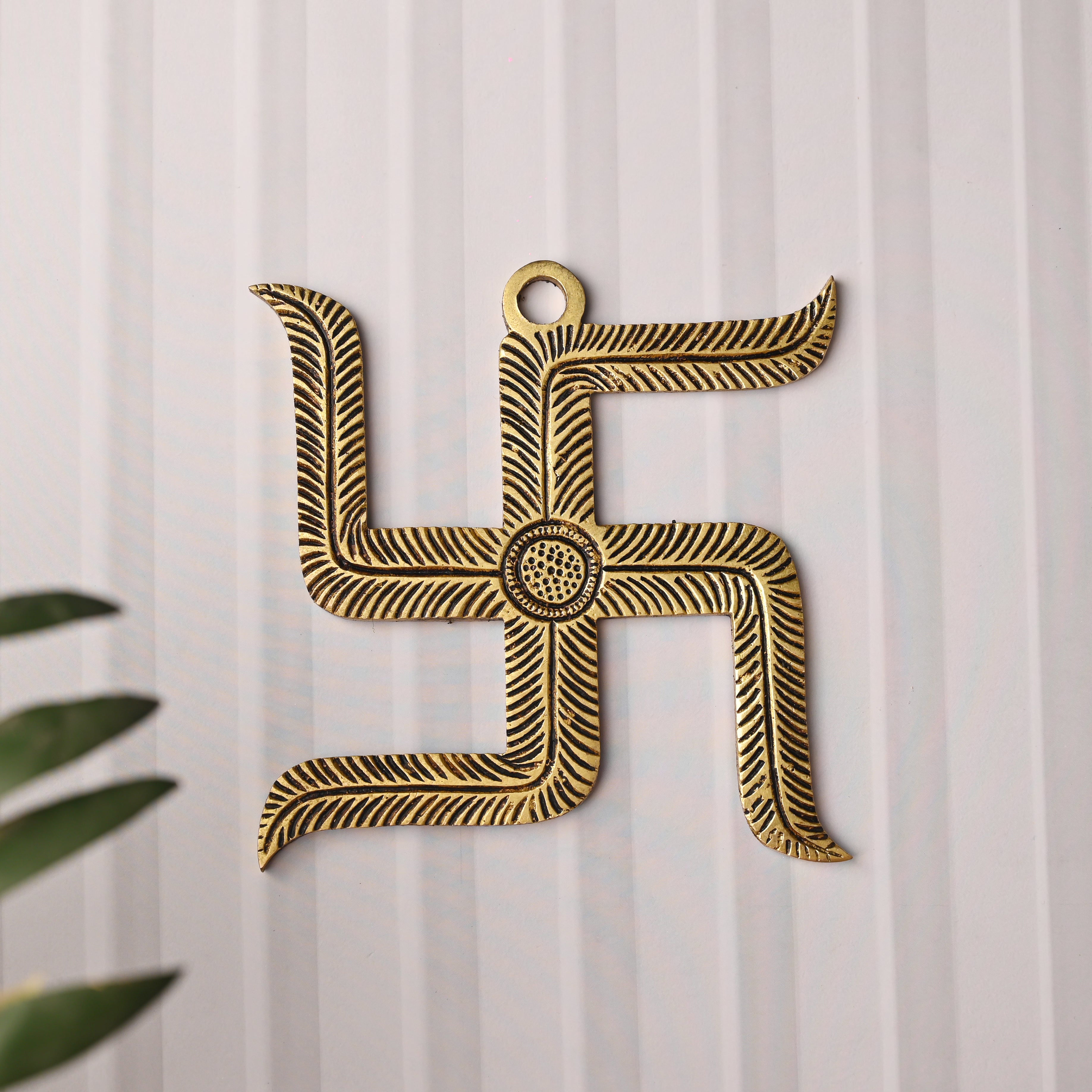 Brass Swastik Wall Hanging – Auspicious Handmade Decor (5 Inch)